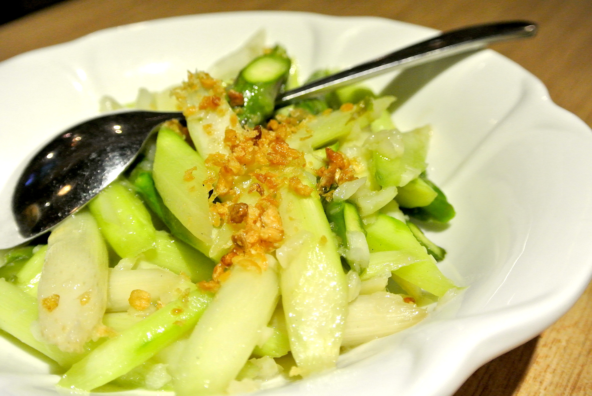 やさすぃ〜味のニンニク炒め。バリ島にしては珍しい極太のアスパラでびっくり。