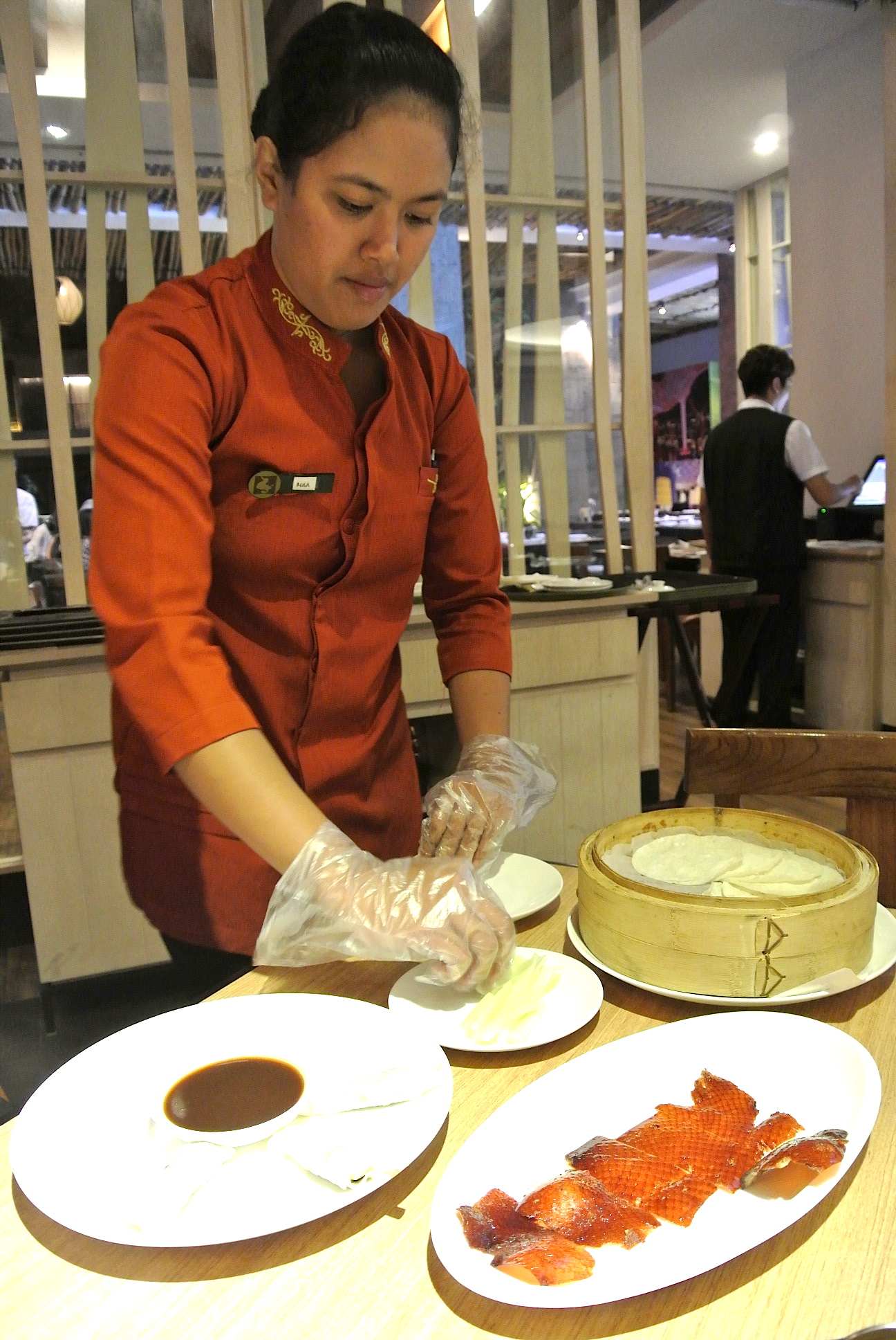 北京ダック姉さんが 一つ一つ丁寧に巻いてくれますよ。(*●ω●)人(●ω●*)