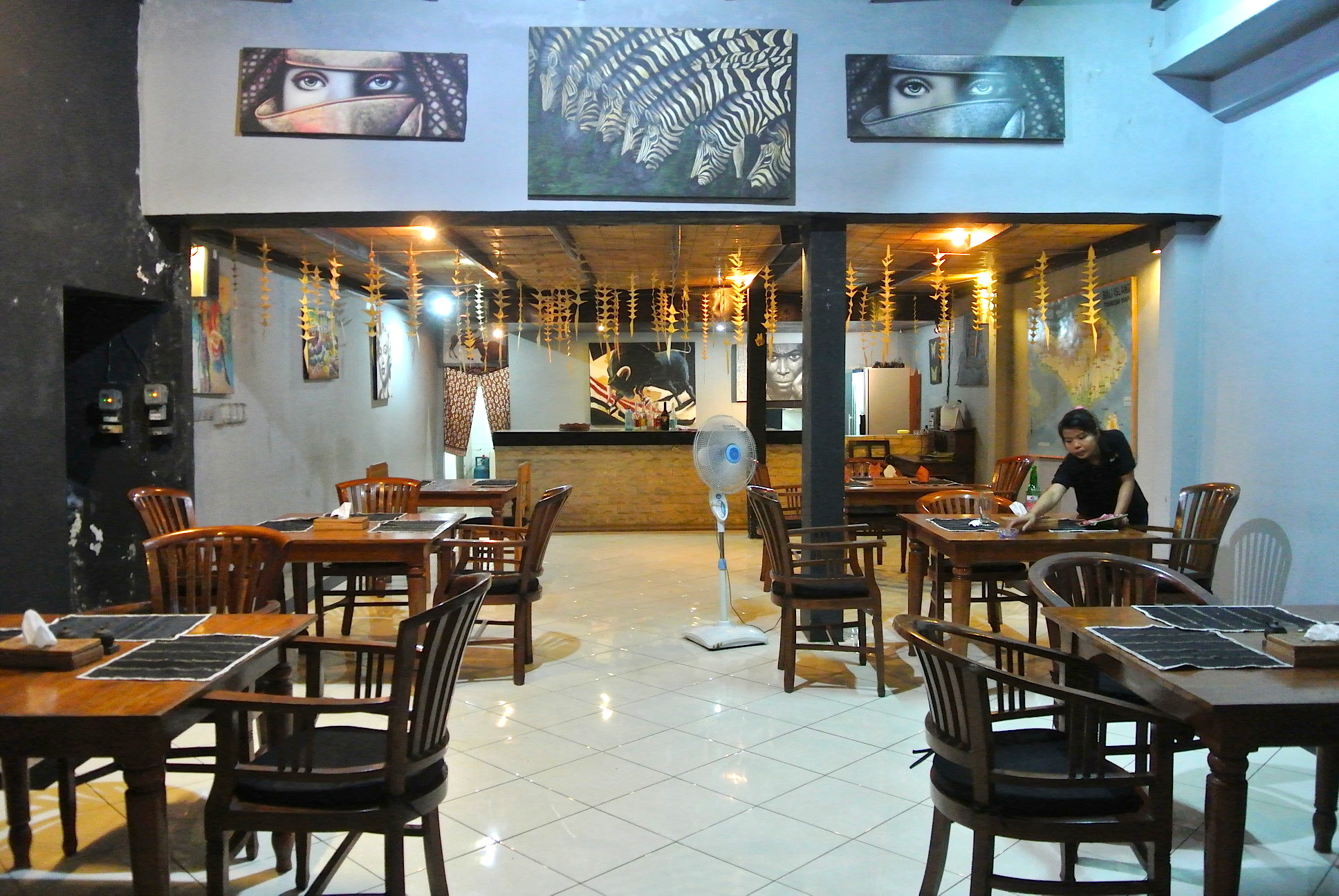 半オープンエアの店内には、個性的な絵画がい〜〜〜っぱい!