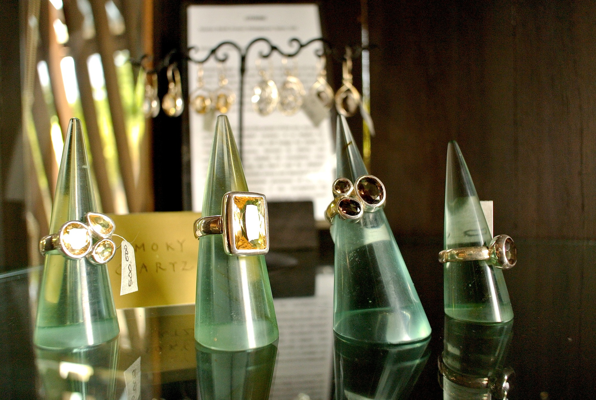 セレクトされたジュエリーや アメティスオリジナルのロゴ入りバティック。