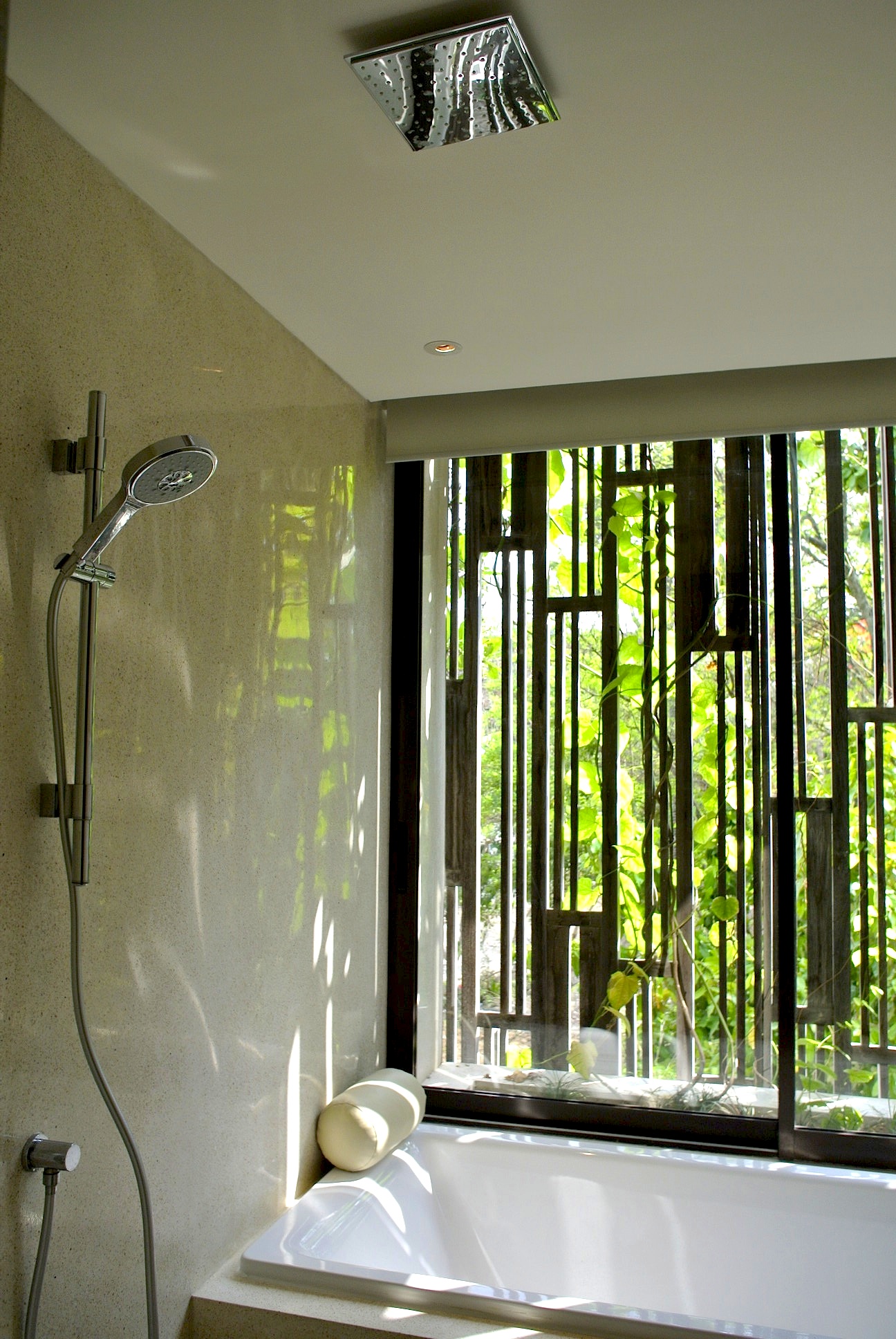 木漏れ日が降り注ぐバスルームには、