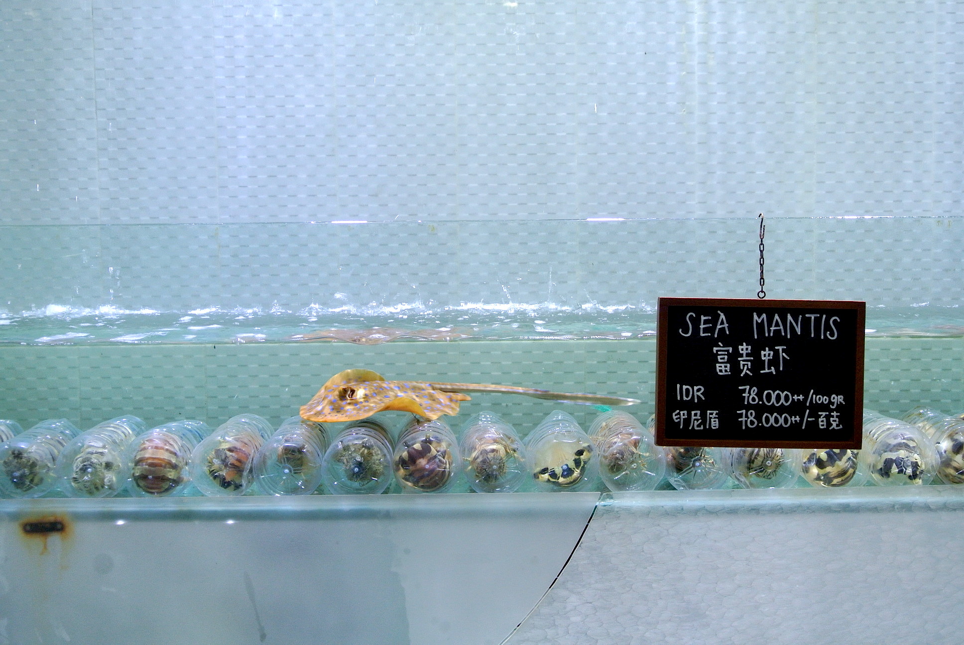 またどか〜んと水槽があって、とてつもなくデカいロブスターやお魚がフワフワと泳いでます。