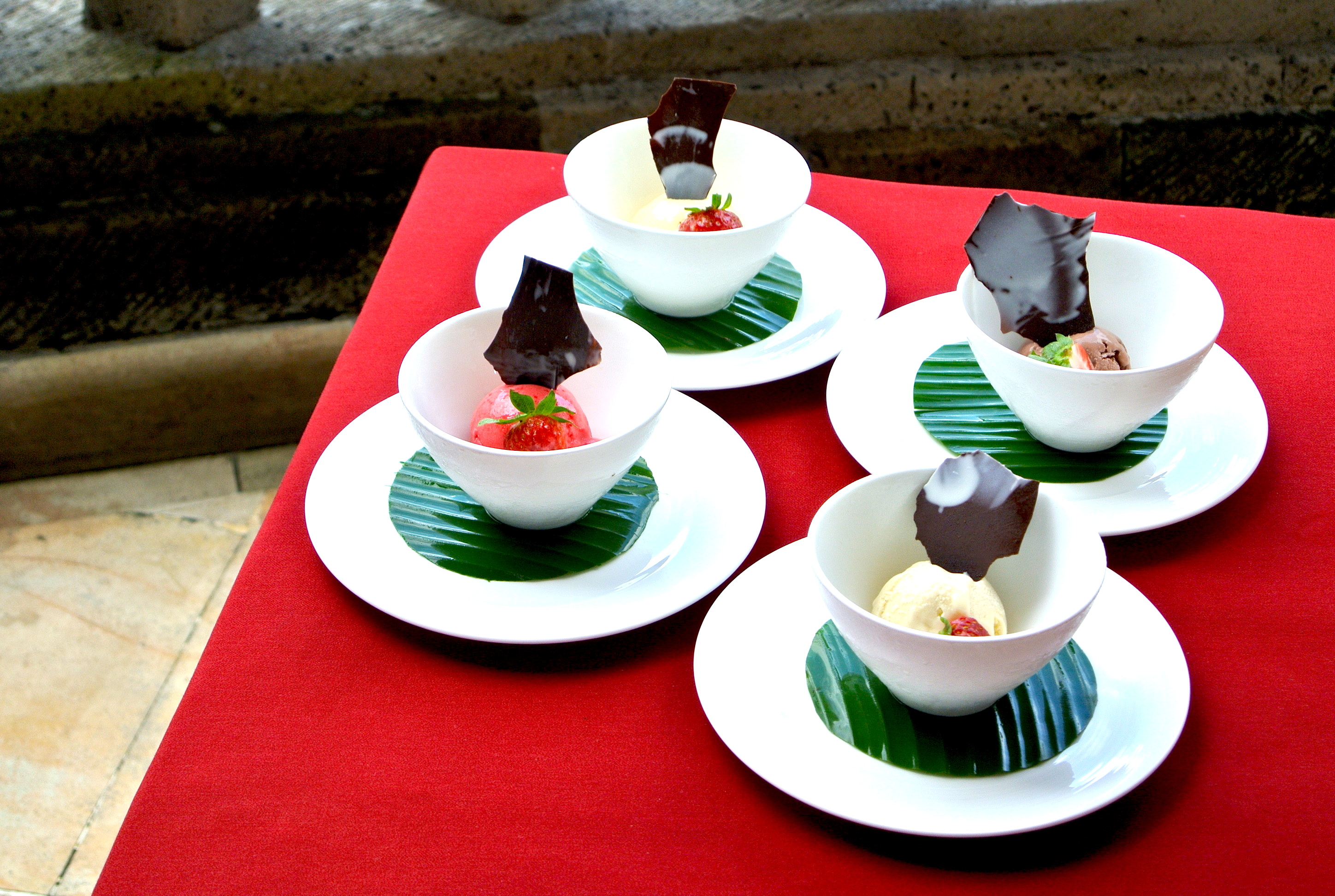 食後は、その日のフレーバーからチョイスできるアイスクリームまたはソルベ!