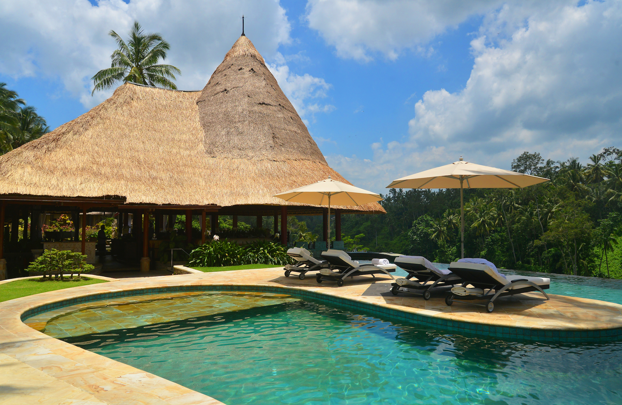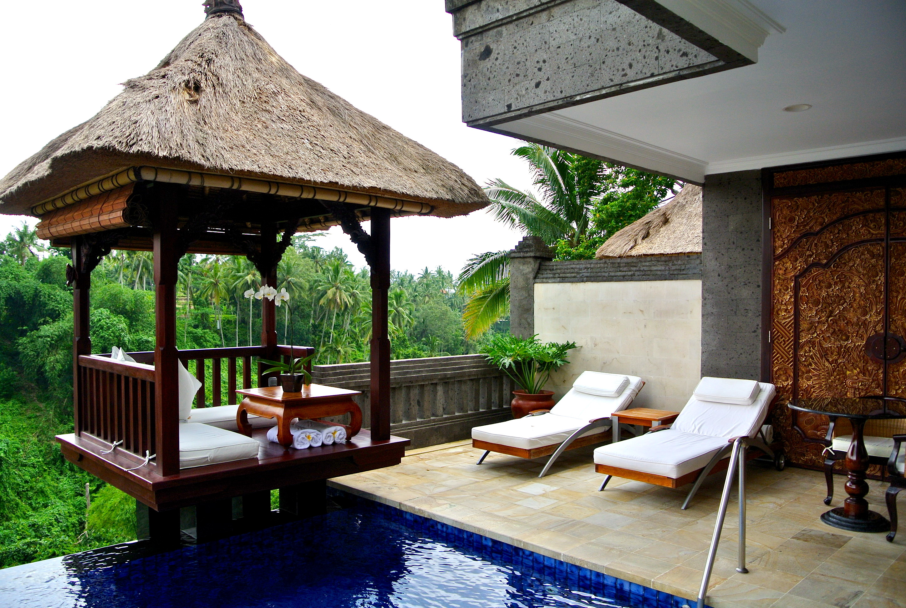 こちのお部屋は、ウブドの渓谷が見渡せるプールとガゼボ付き!