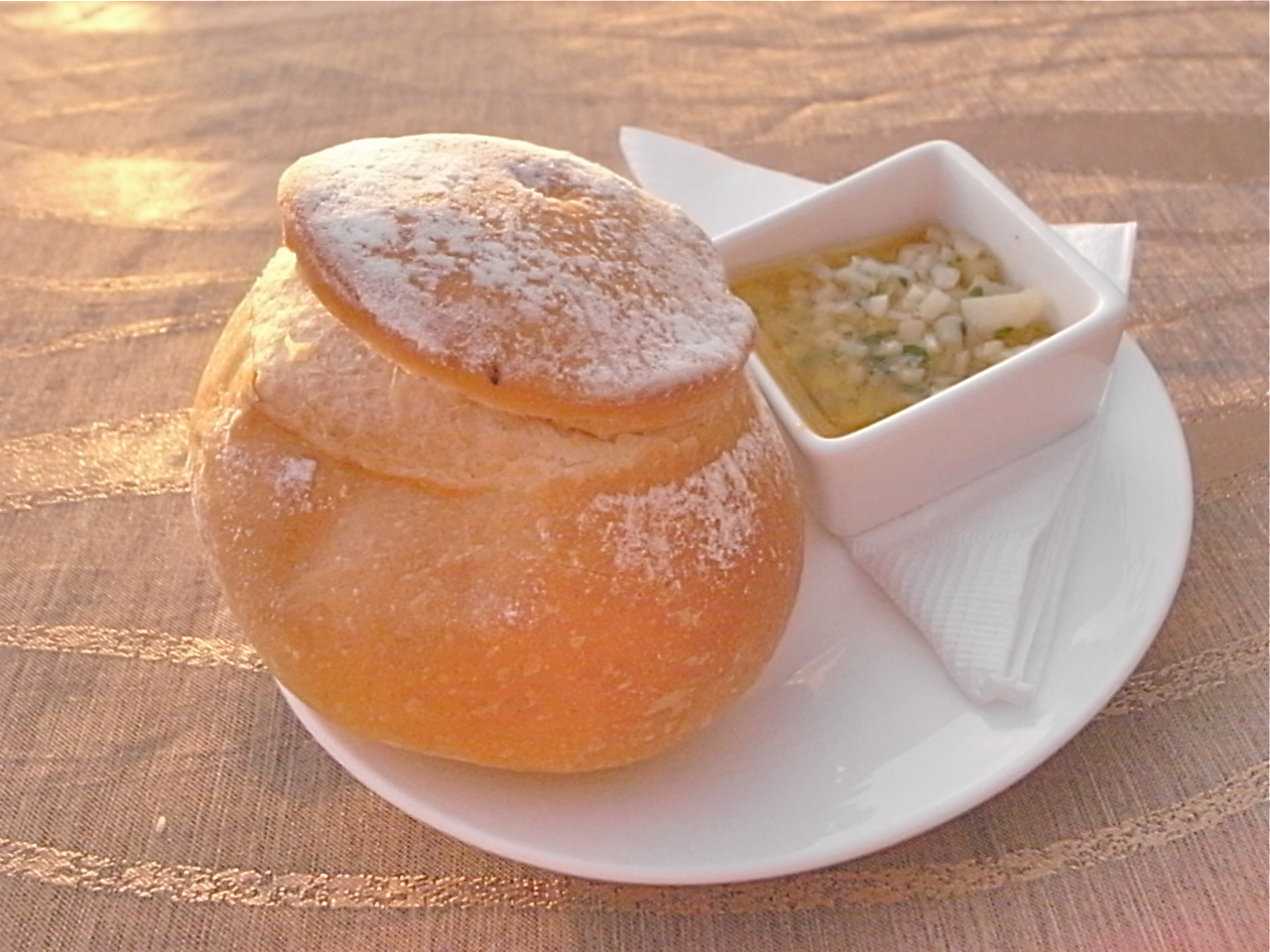 と ふかふかのフランスパンが一緒にサーブされてきました。