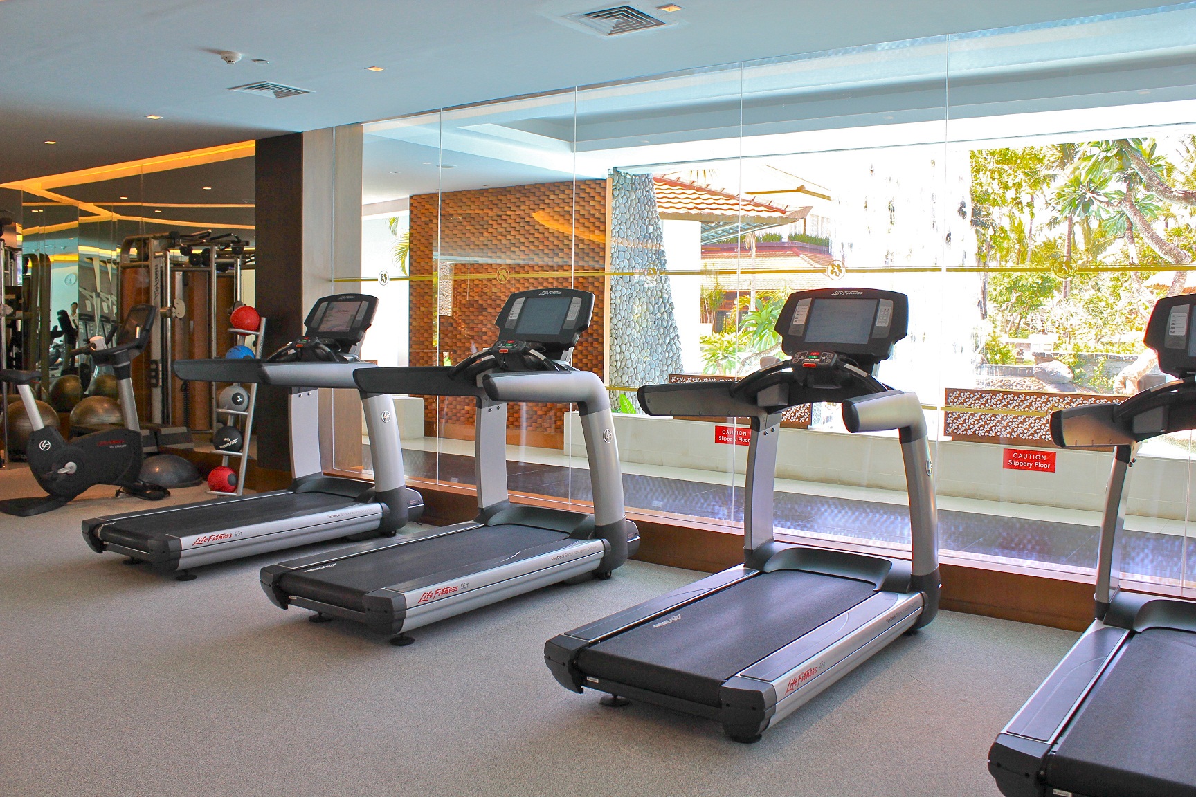 と スパ施設脇にはジムスペースもあってマシーンも揃いに揃ってます。