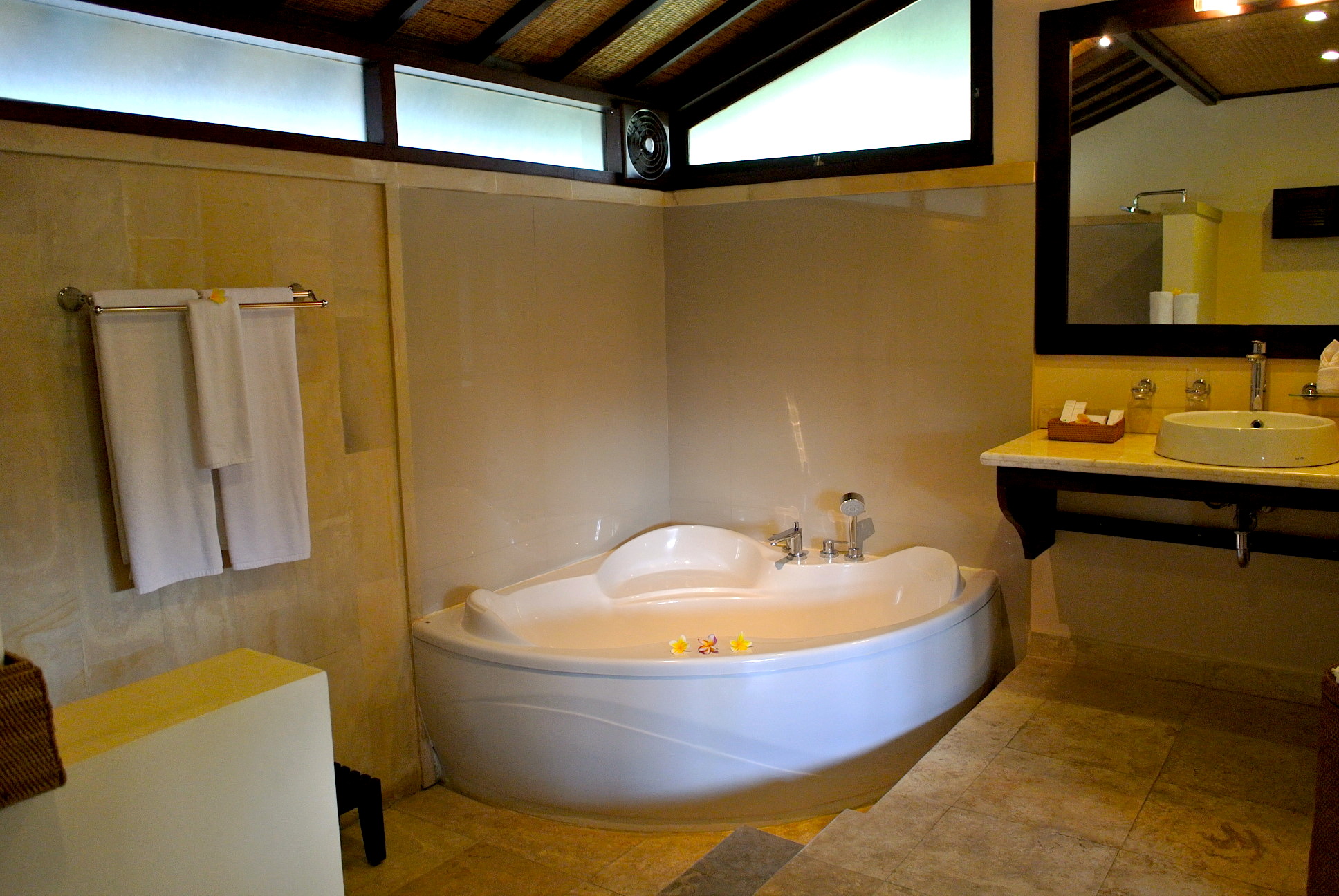 各部屋にそれぞれバスルームがあり、造りもスーペリアヴィラと同じ。