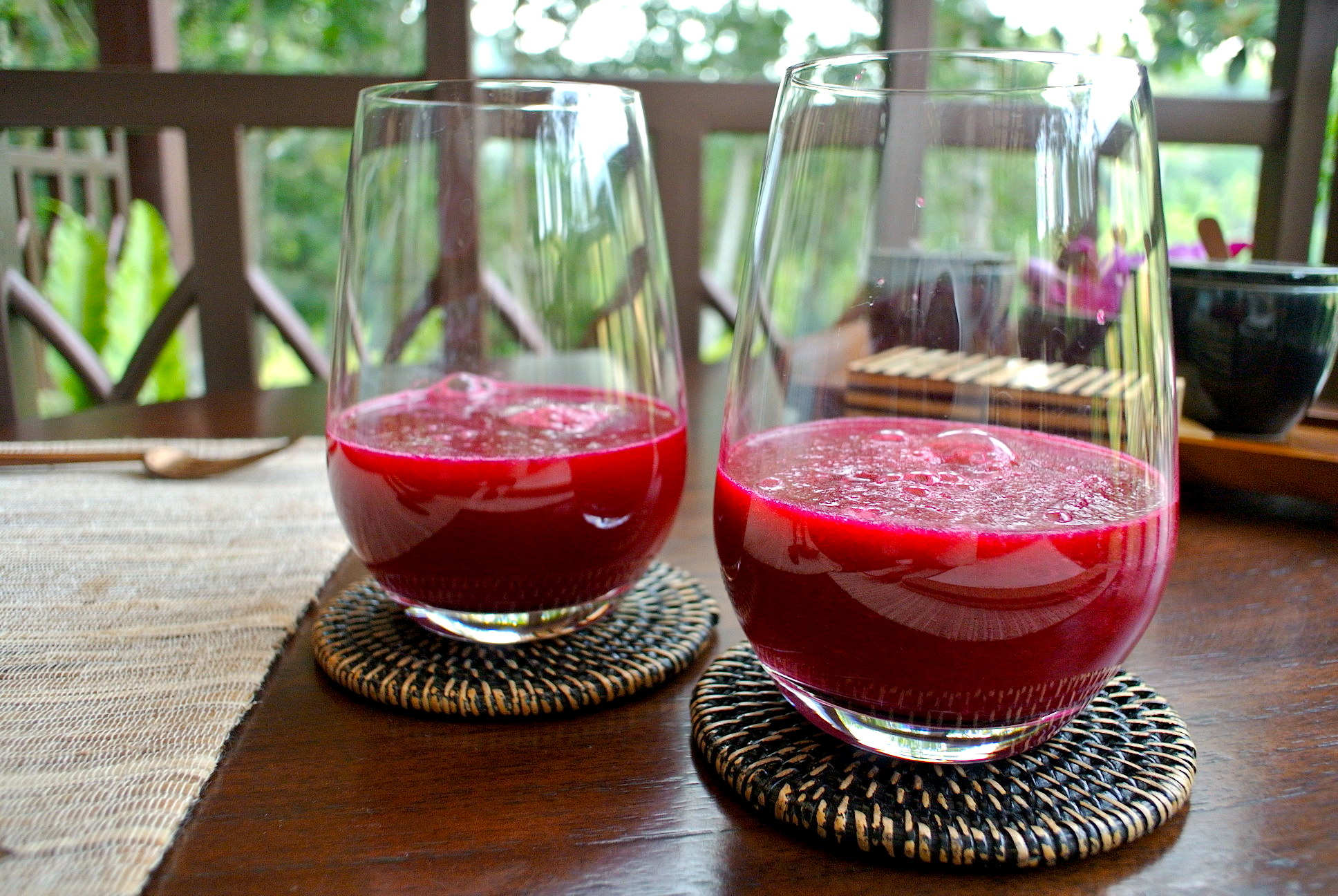 まずは目覚めのいい健康ジュースから!! (= ´ σ3`) フンフフ~ン♪