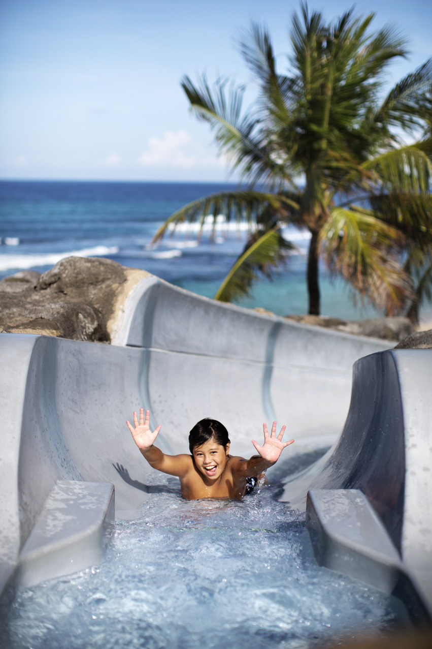 ・白砂のビーチ、子供用ラグーンを含む4つのプール、30mスライダー