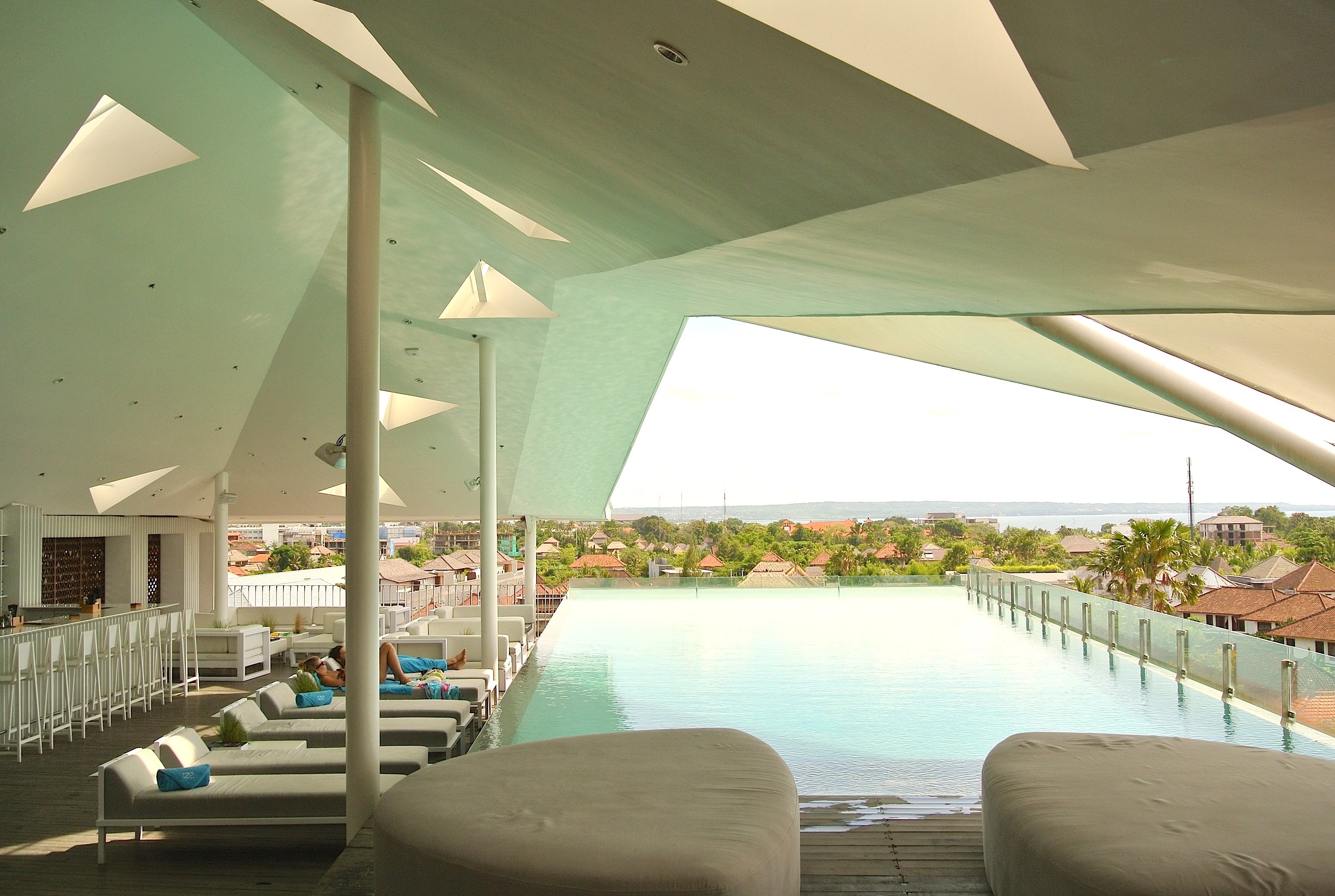 7階に位置するルーフトップバーとスイミングプールは