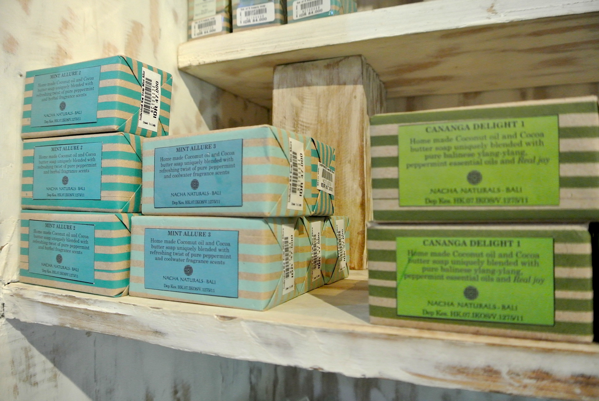 石鹸やオイル (もちろんココナッツオイルも!)、洗剤、メイクアップコスメなんかも置いてます。