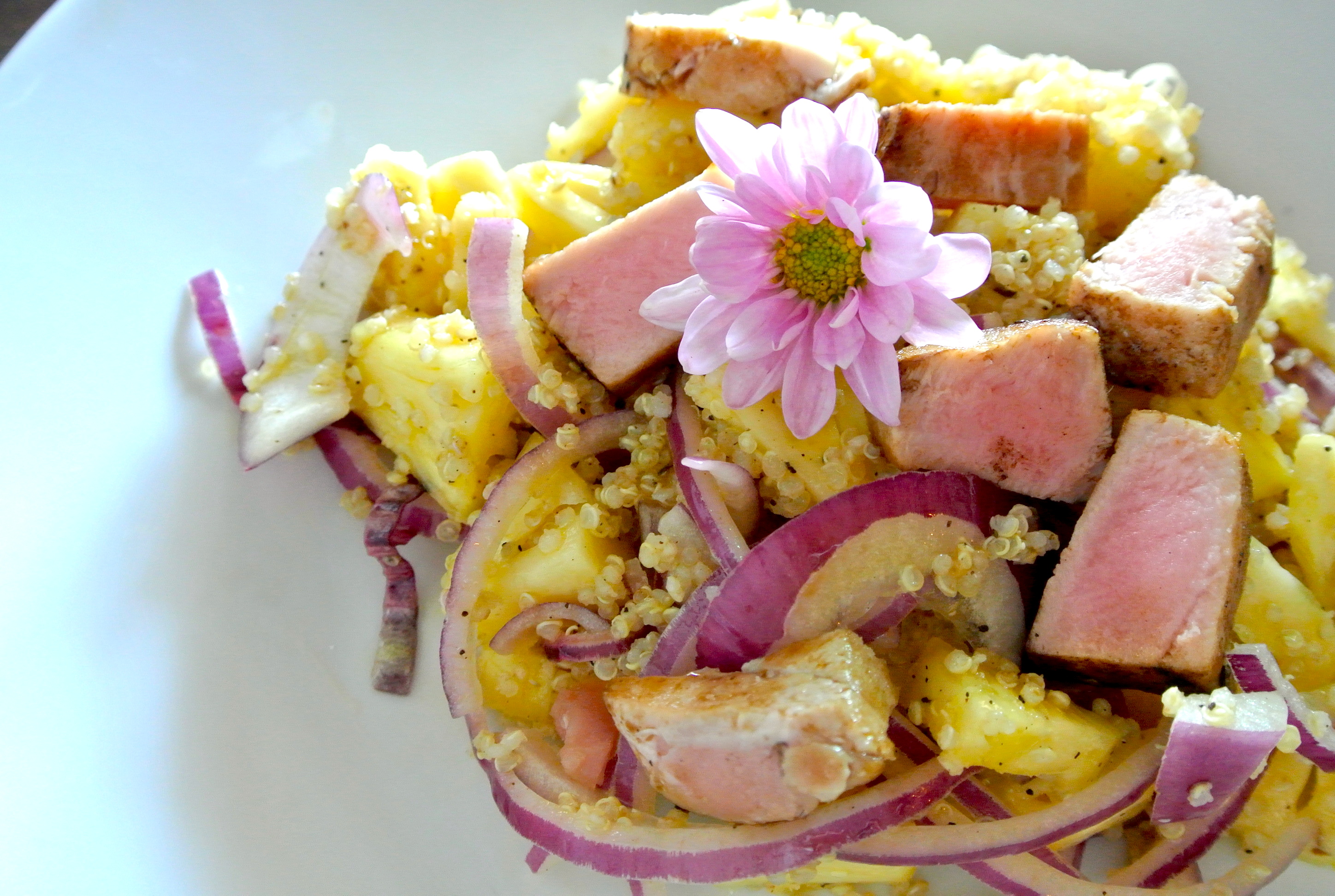 しかもマグロ、パイナップル、キヌア、赤タマネギが入った何とも斬新なサラダ!!!!!