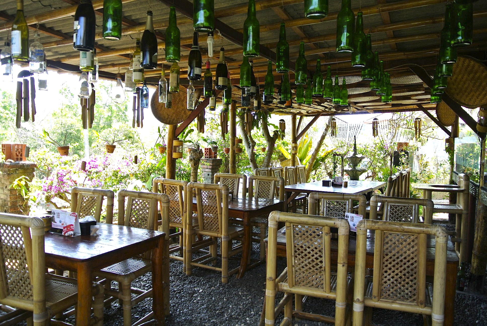 瓶がたくさんぶら下がってる。