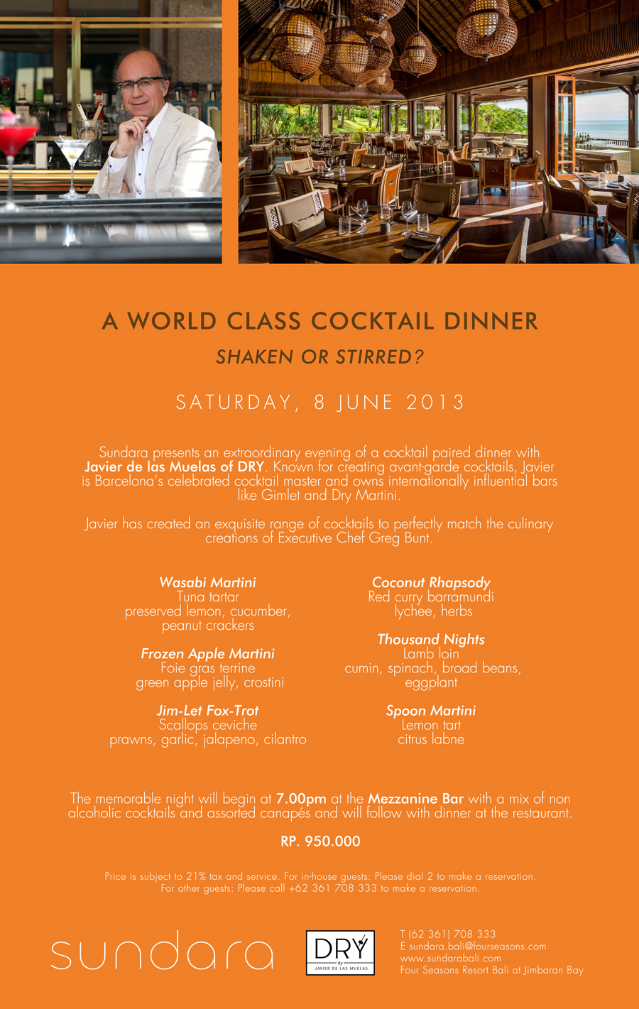Javier de las Muelas氏による 世界最強のカクテルが味わえるカクテルディナー!!