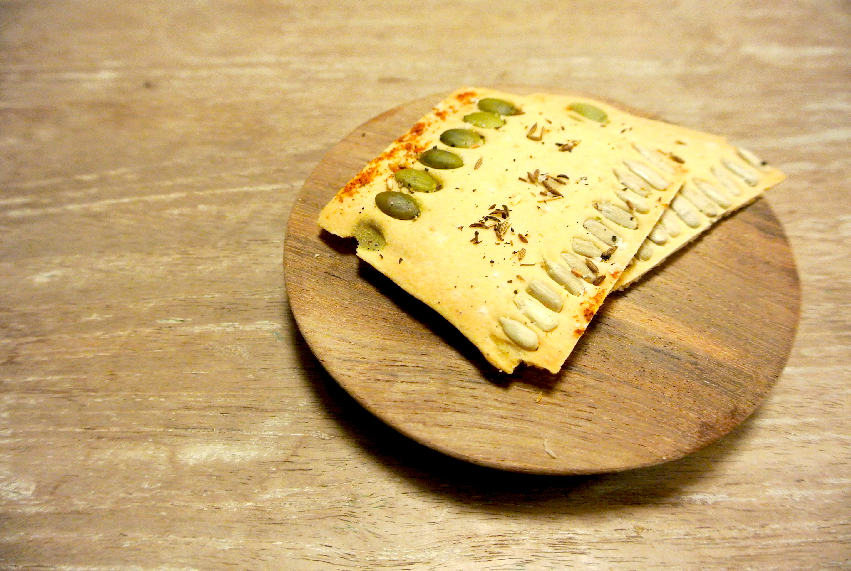 こんがり温められた、ひまわりの種が入ったお洒落クラッカー?