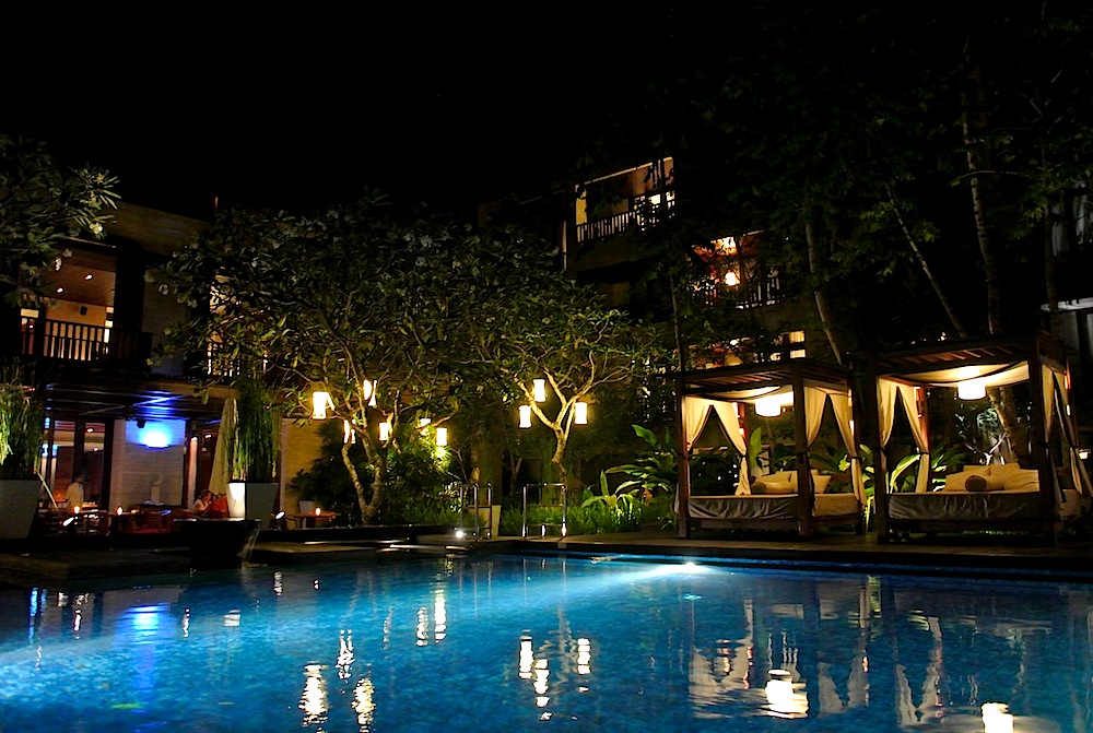 キレイなコンラッドスイート専用のプールが目の前に見える 隠れ家レストラン。