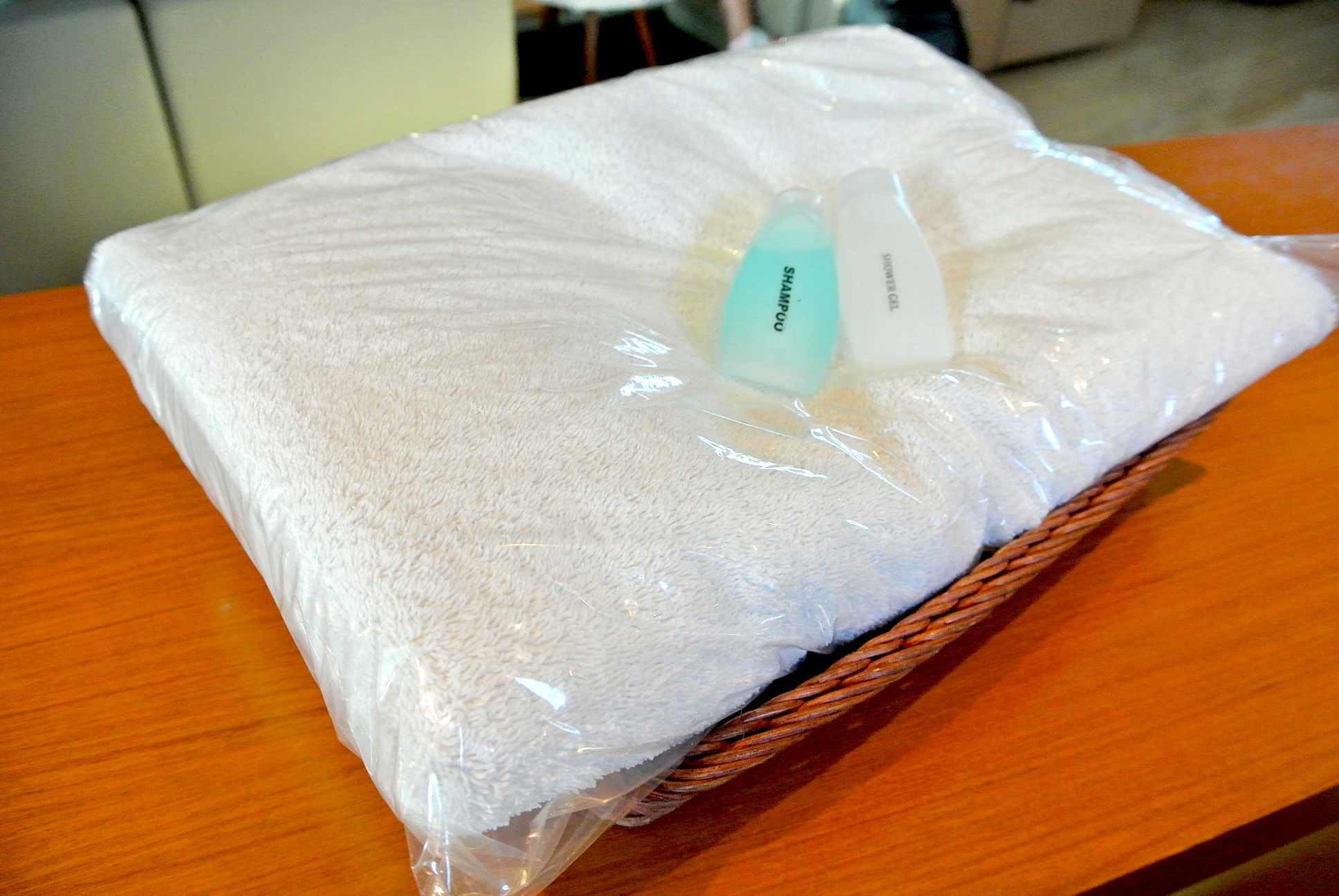 こちらもビジネスクラス同様で、バスタオルとシャンプー+ボディージェルのセットの