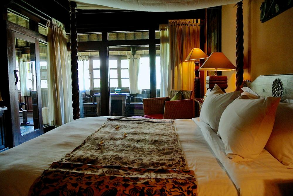 全体で85平米 ジャワの様式を取り入れたアンティークが光るベッドエリアです