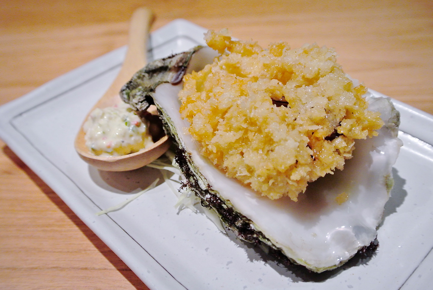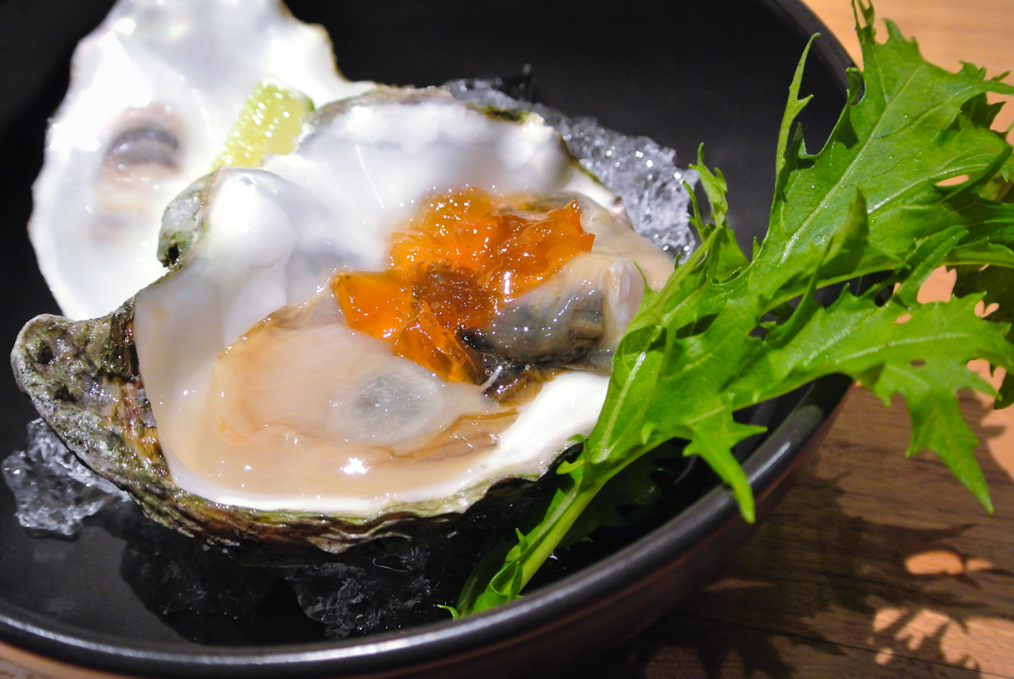 生牡蠣はポン酢ジュレが効いてうまし カキフライは特製タルタルソースと一緒に♪