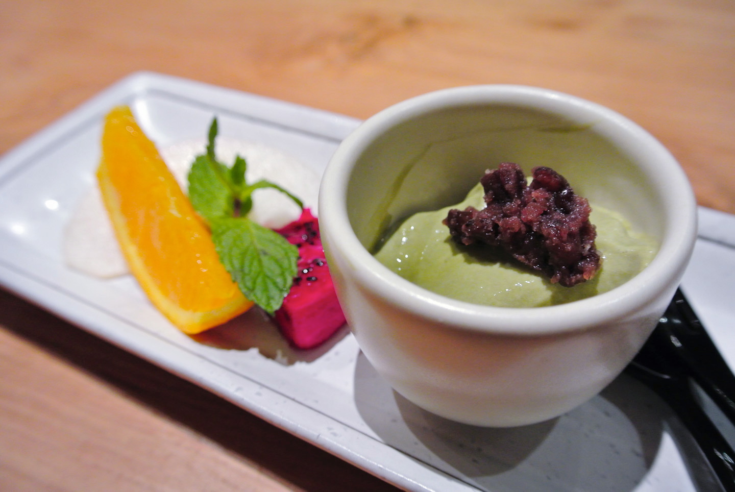 スイーツまで抜かりなし! 特製お抹茶ムースと小豆