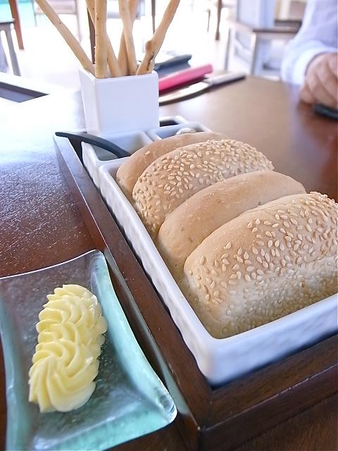 とフェイシスの自家製パンがサーブされてきましたよ? 今日はカモミールブレッドだとか♪