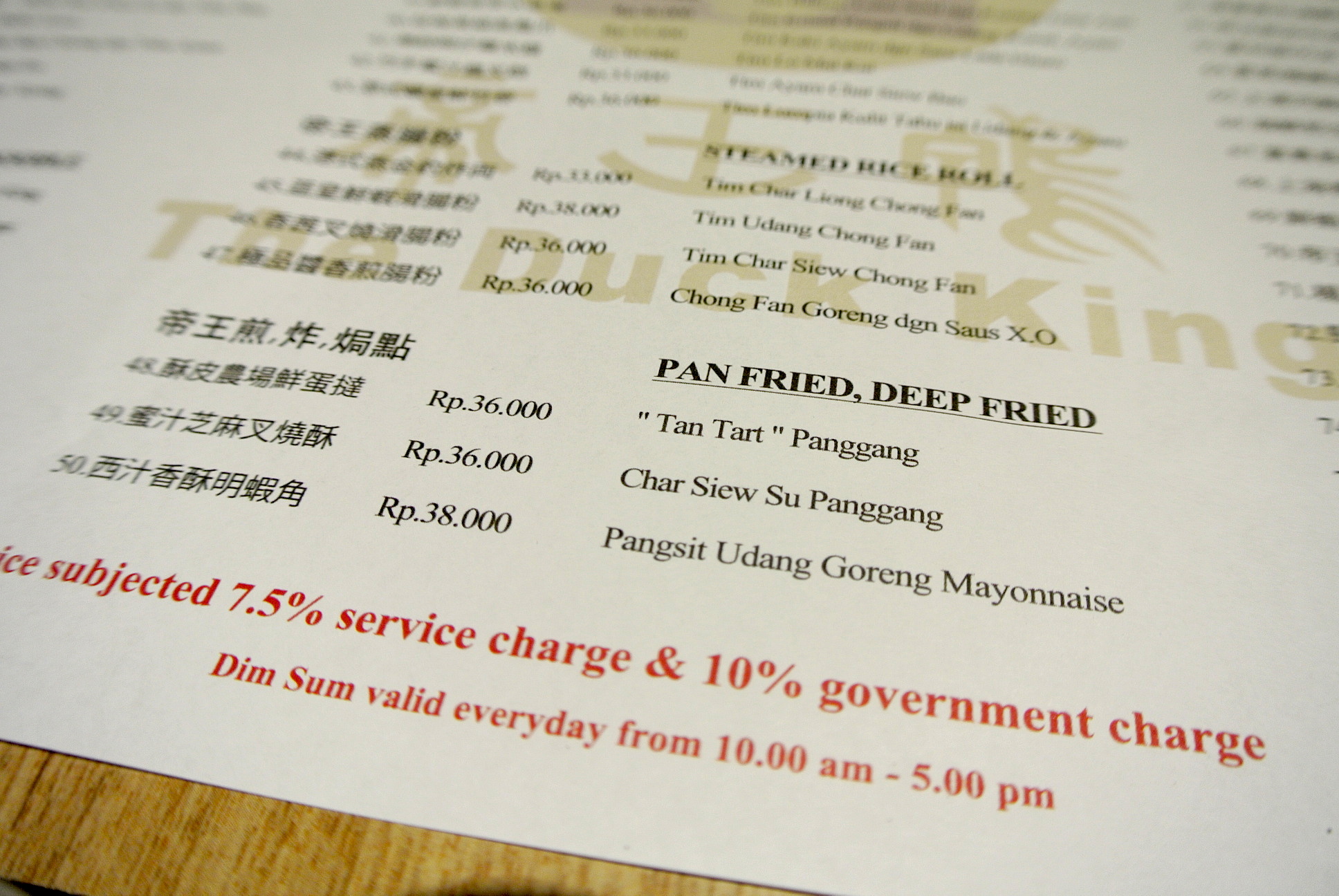 Beijing Duck (ハーフ) Rp 228,000+17.5%税サ