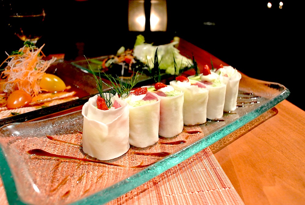 マグロと野菜の生春巻き 醤油バルサミコソース Rp 155,000+21%