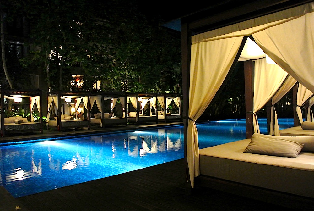キレイなコンラッドスイート専用のプールが目の前に見える 隠れ家レストラン。