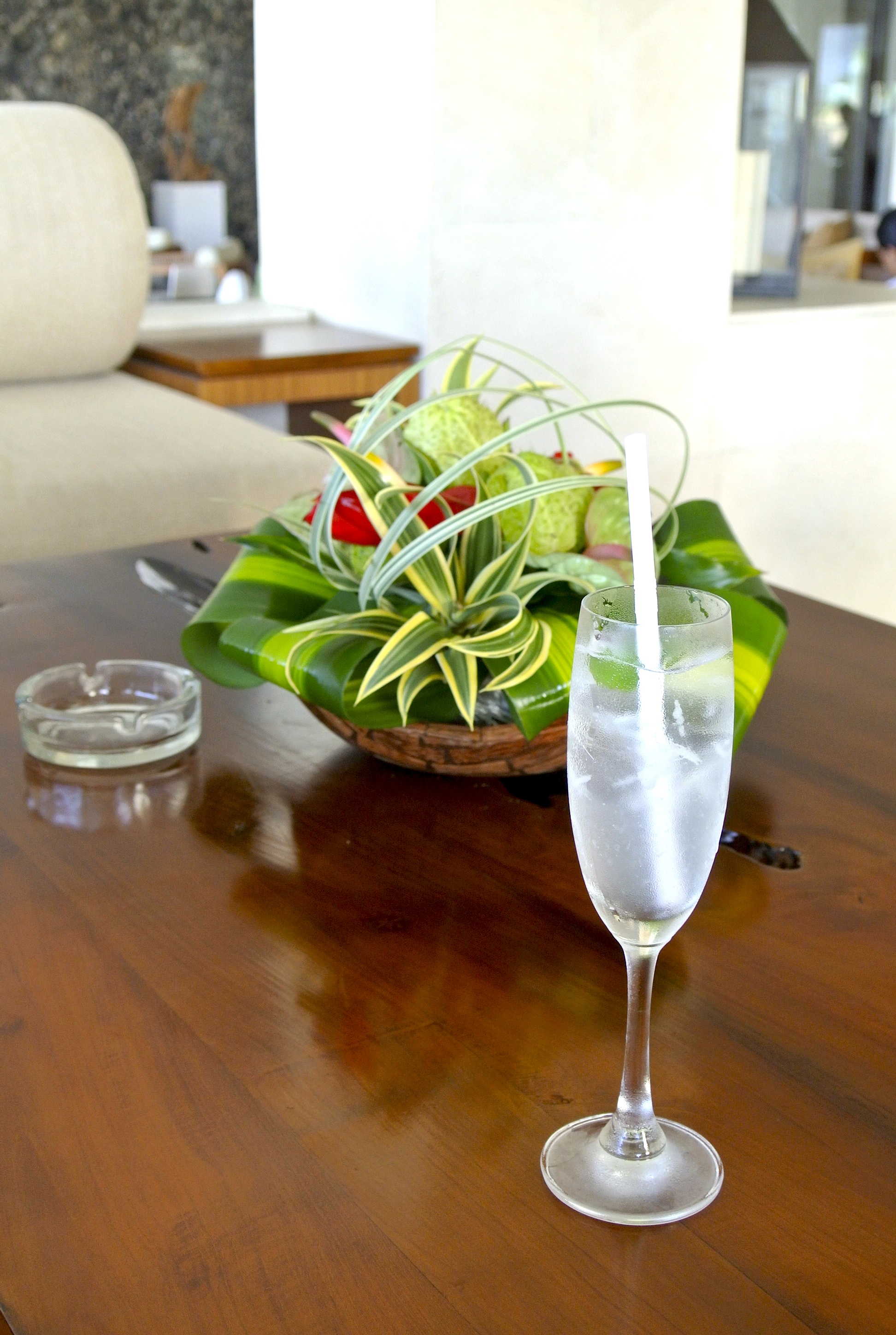 ロビー脇のTE.JA.COバーにて、ちべたいジュースを飲みながら♡
