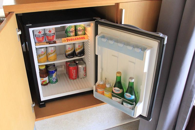 ミニバーもジュースは無料で利用できます。[写真内のアルコール、ミネラルウォーターは有料]