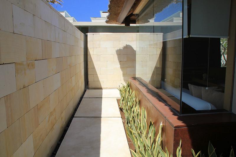 さてベッドルームと反対側には水回りですね。っとそのままプールへと続いていました!!!