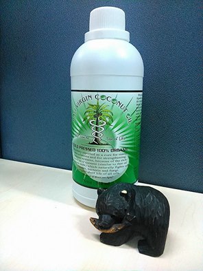 ちゃいますよ、熊の後ろにある今話題のヴァージンココナッツオイルの話しですよ。