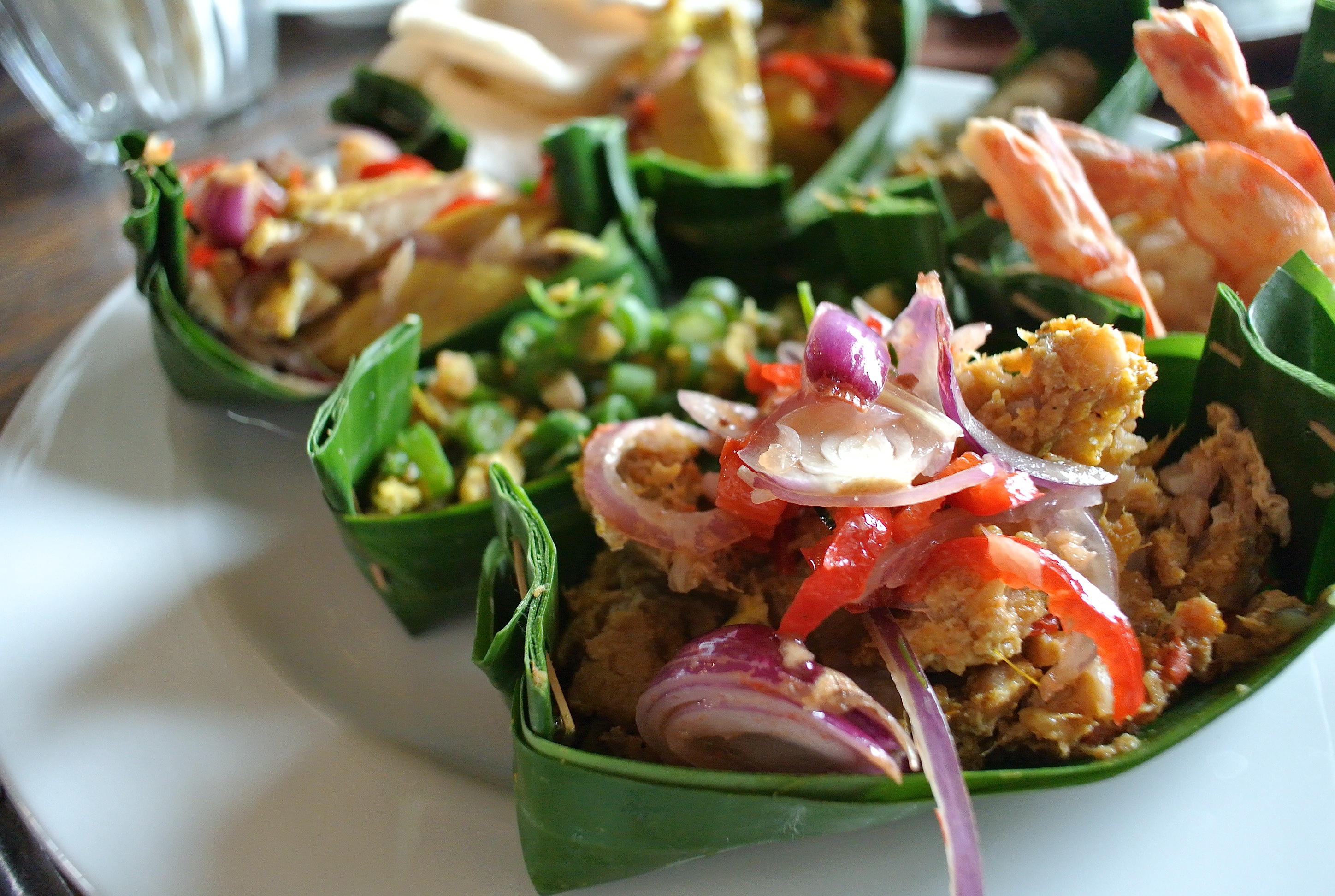 追加で下のフィッシュボールスープとアヒルのミンチ バナナリーフ包み蒸しが付きます。