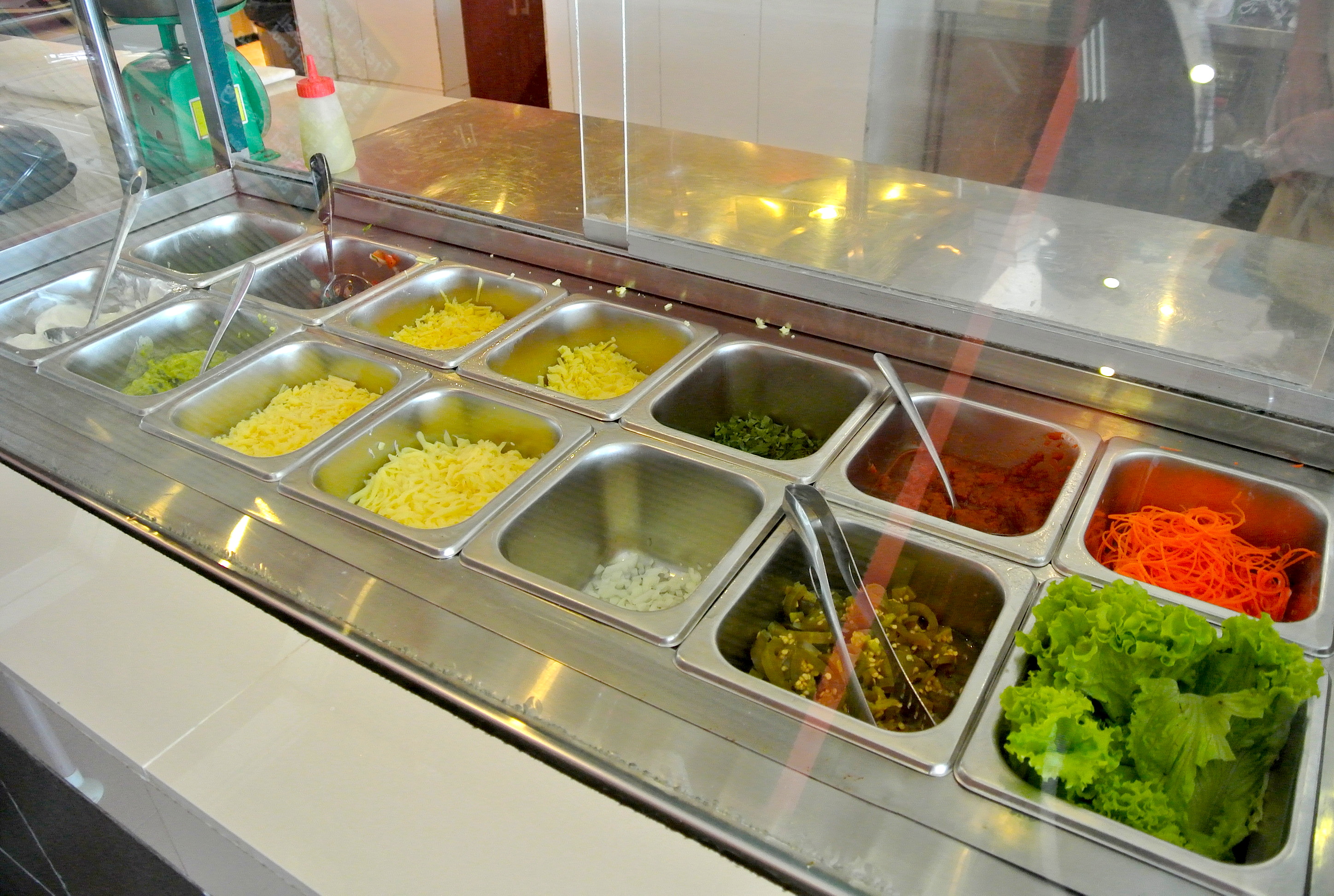 タコスはチキン、ビーフ、エビ、ベジタリアンから選べるのである。( Rp 51,000 ~ 65,000 ルピア )