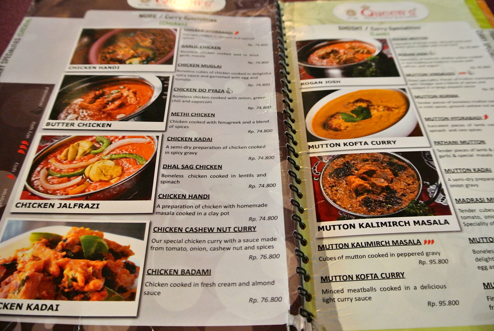左:Madrasi Mutton Curry ?Rp 95,800 + 税サ