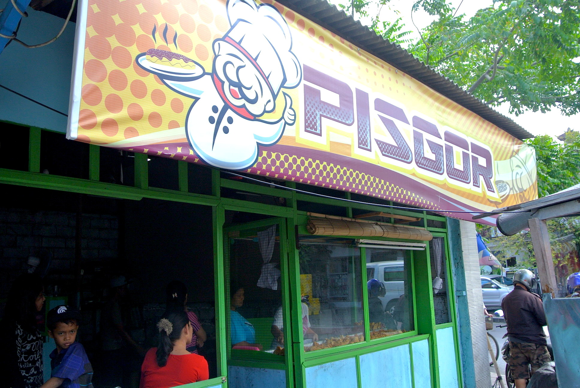 絵のコックさんが持ってるのは まったくピサンゴレンじゃないけど、ここトゥバンでは有名なんです。