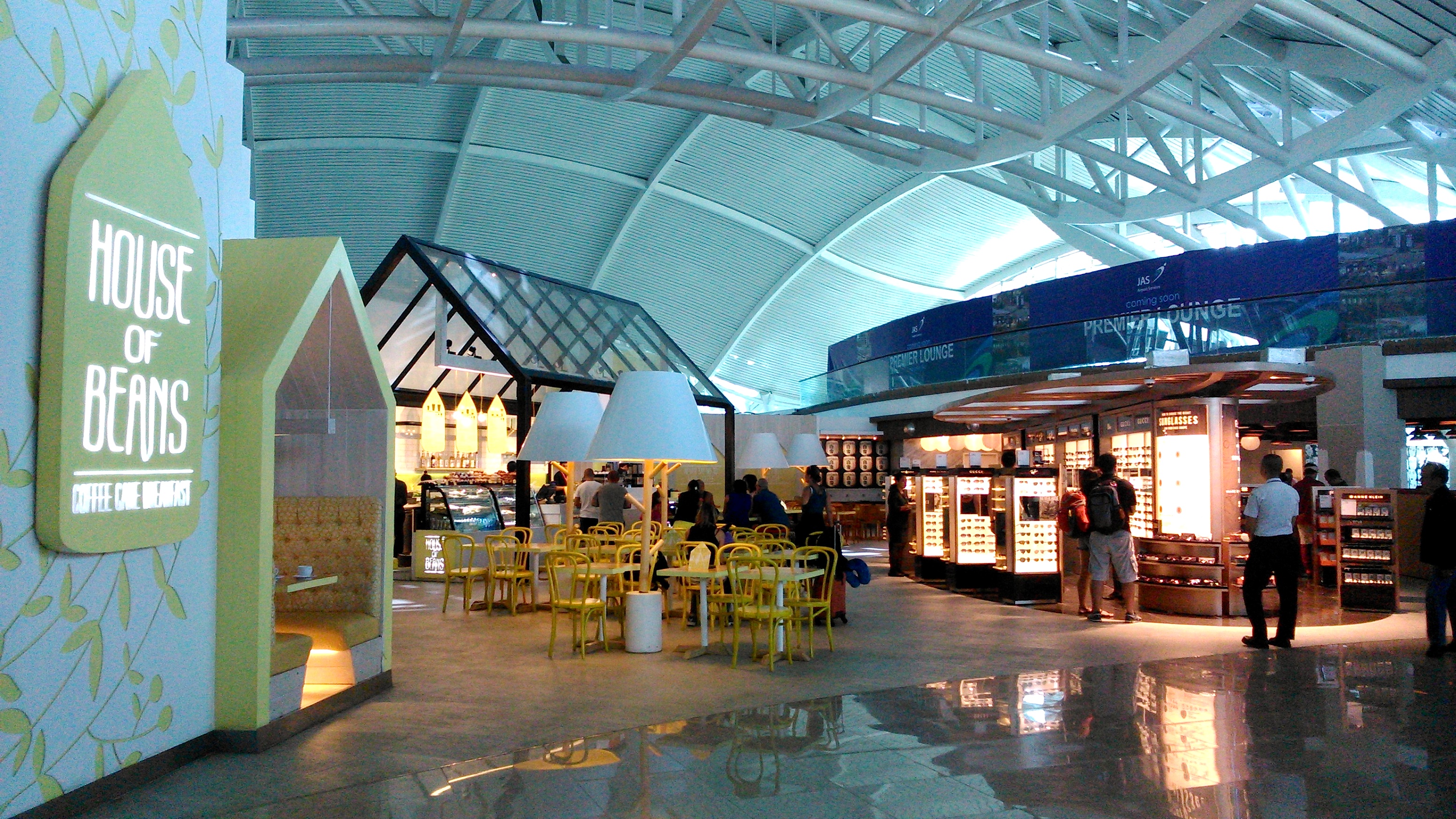 プレミアムラウンジは只今4番ゲートにあり仮設ラウンジとなります。