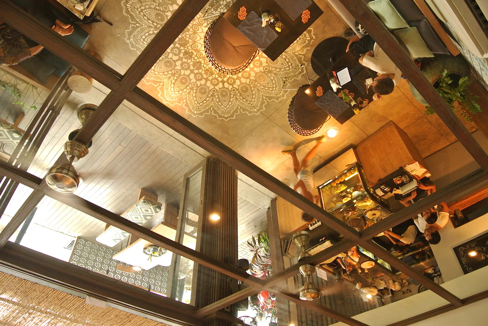 天井は鏡になってました♪