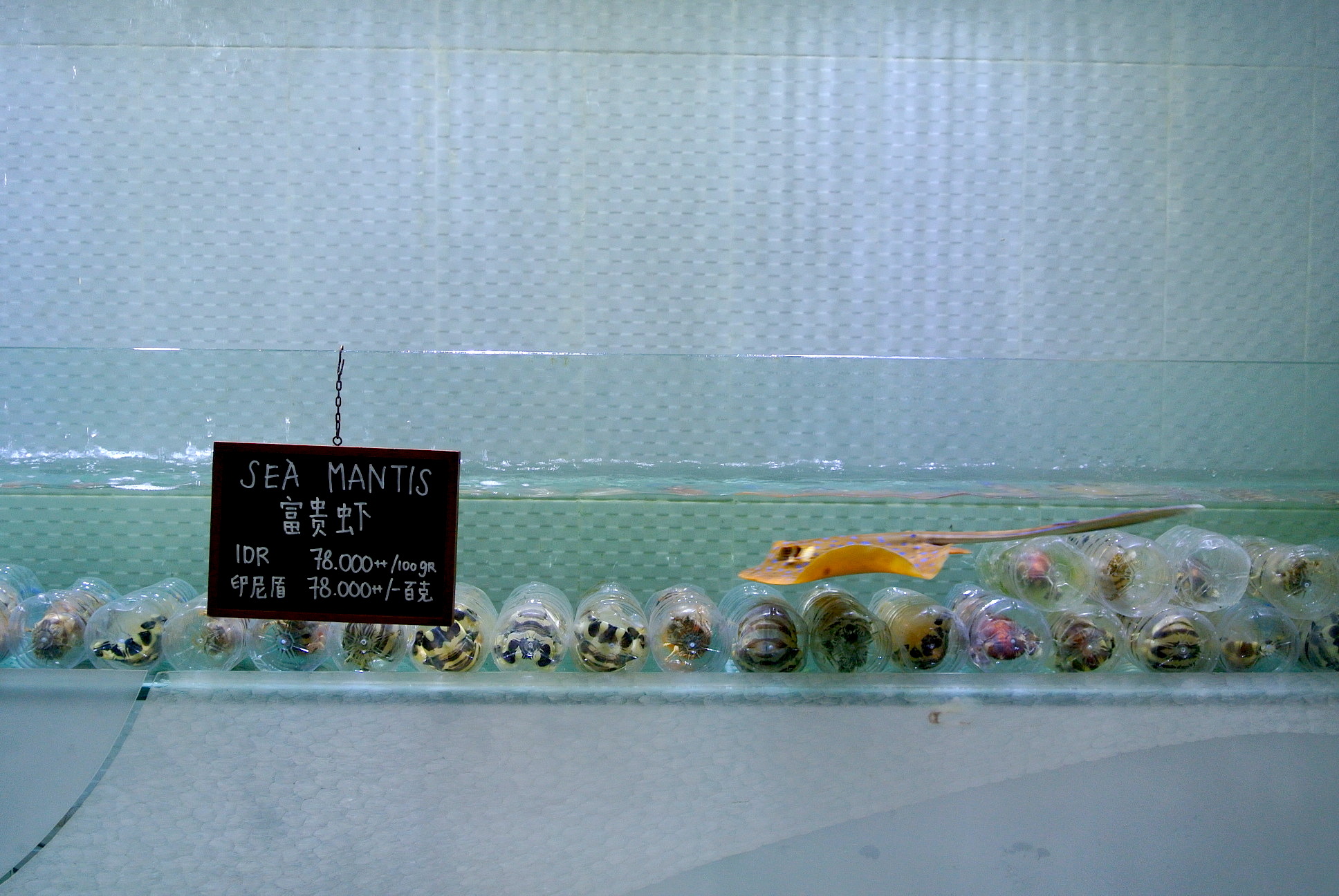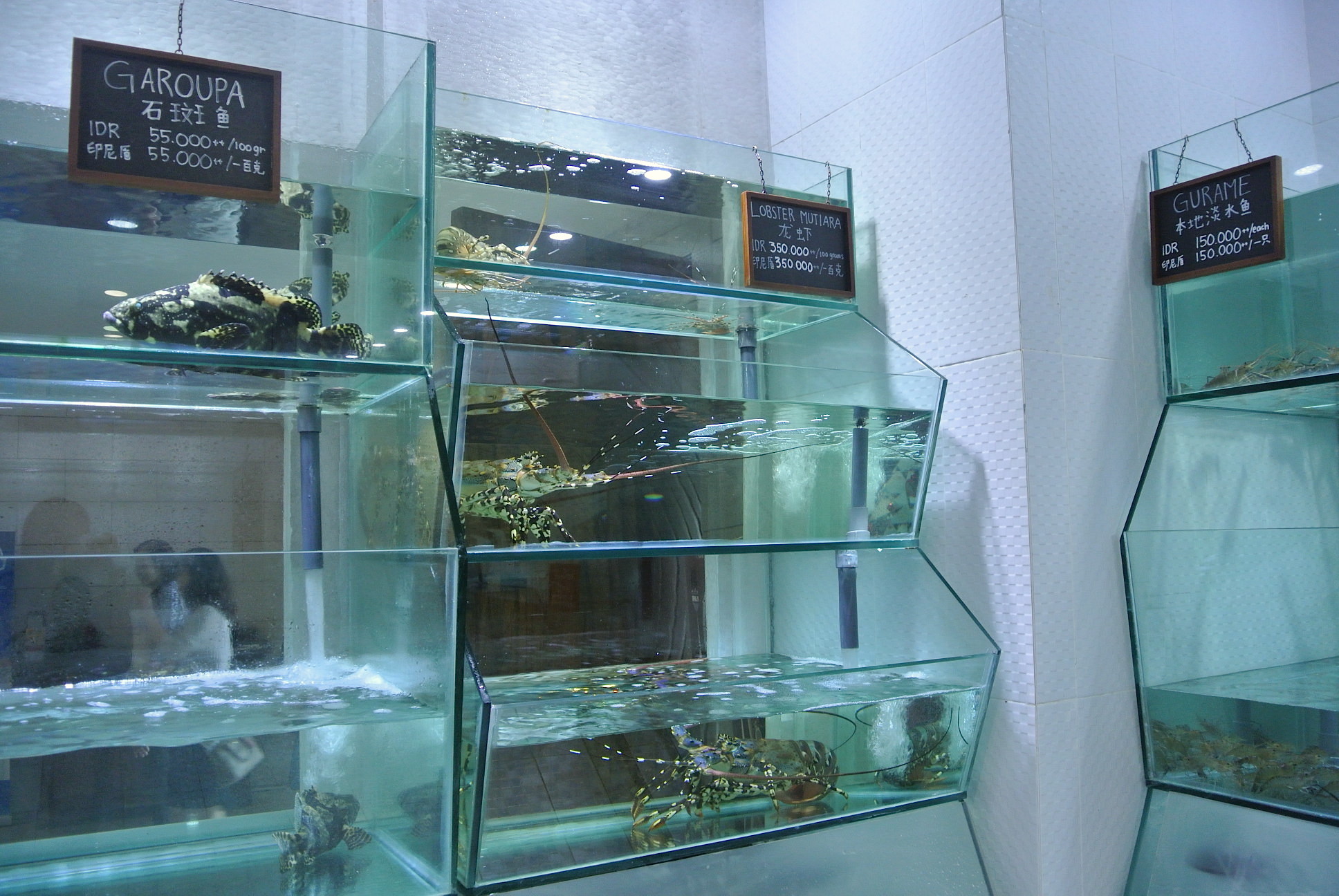 またどか〜んと水槽があって、とてつもなくデカいロブスターやお魚がフワフワと泳いでます。