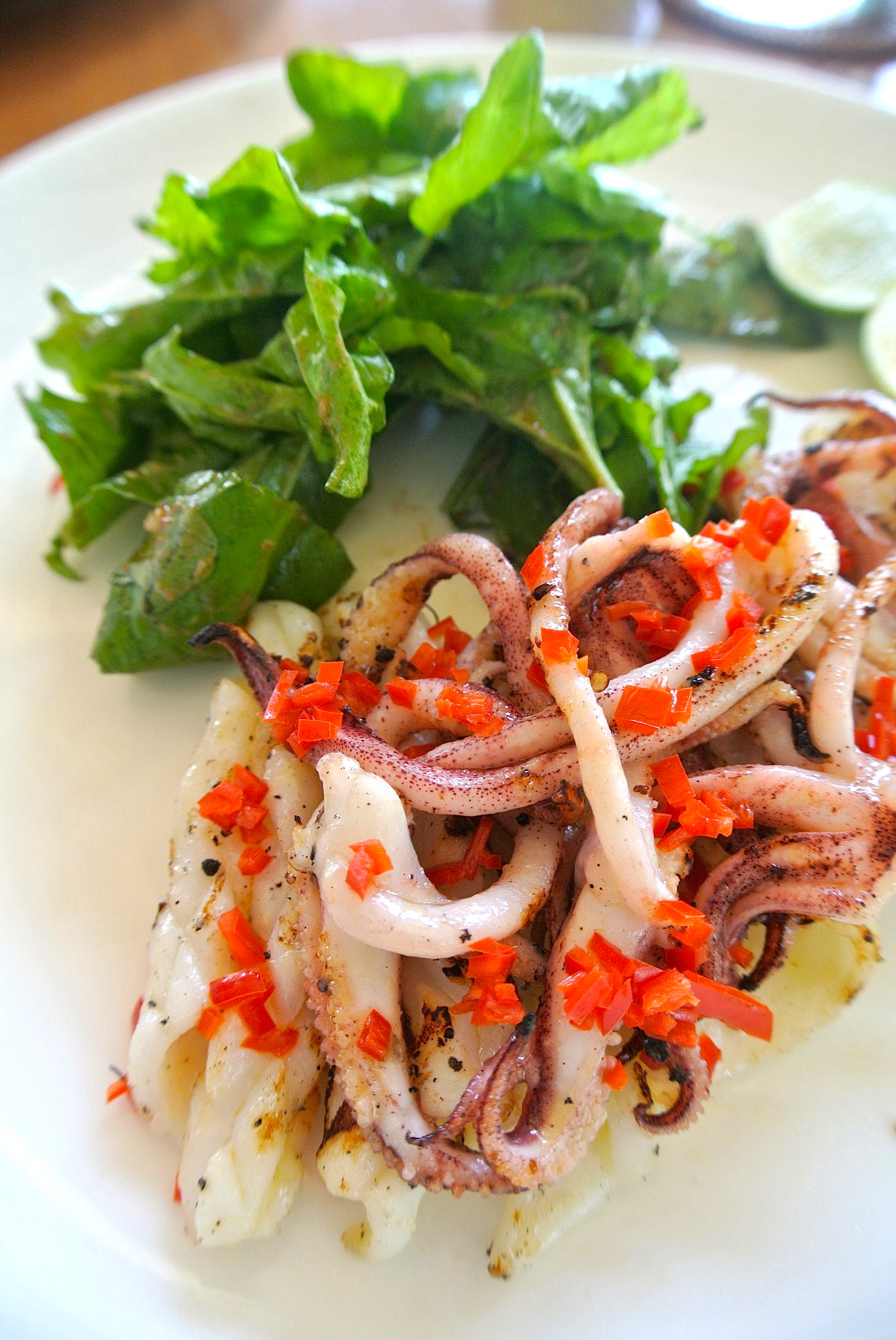 Grilled calamari, rocket, chill, lemon Rp 56,000 + 16%税サ