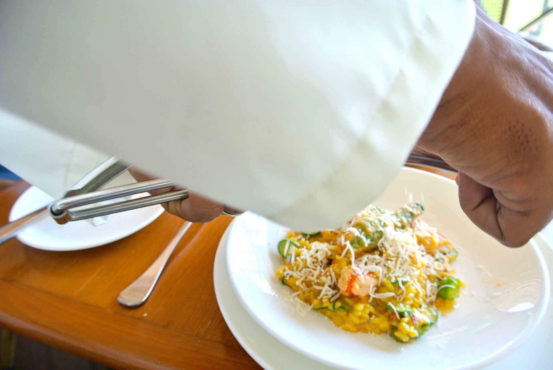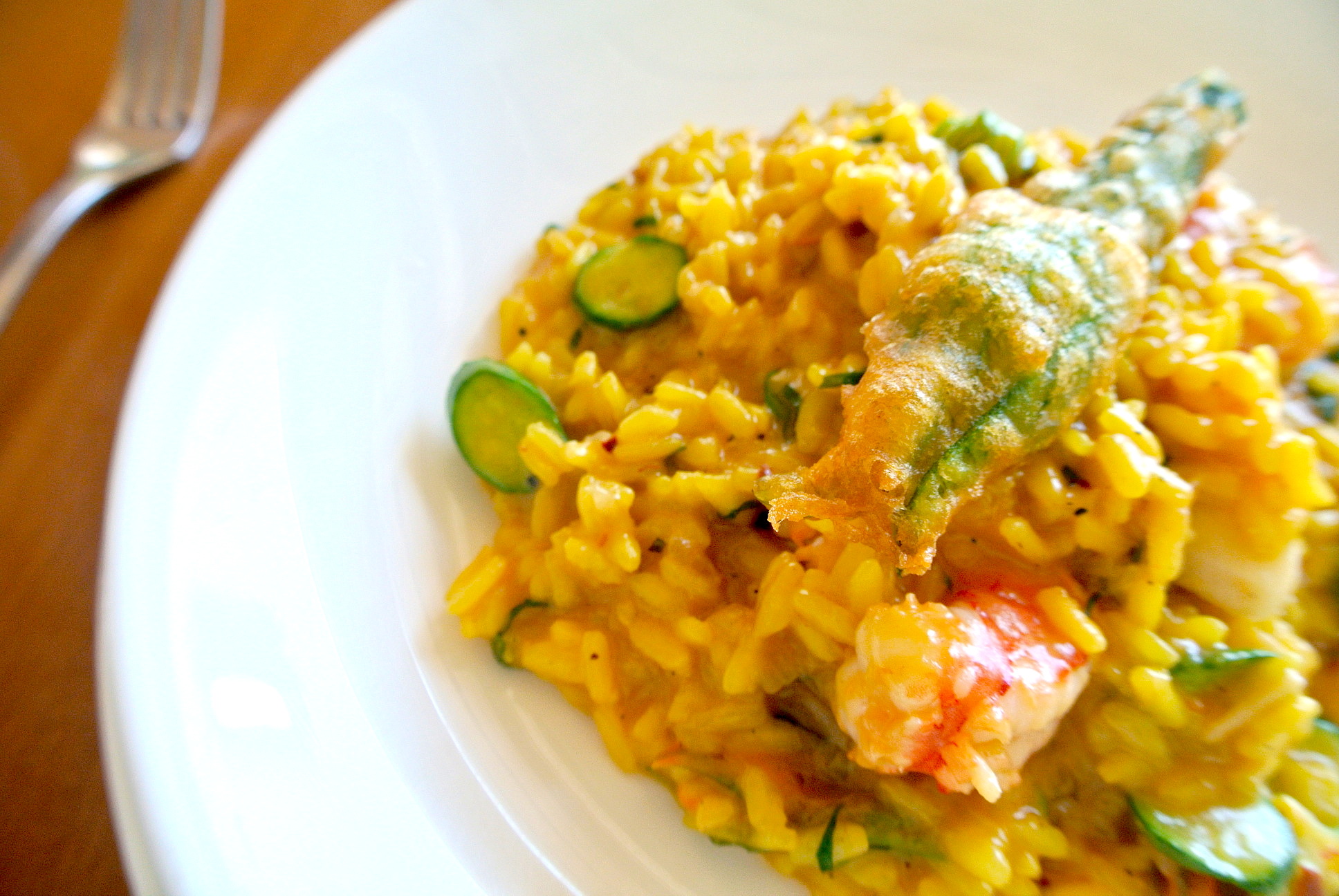Saffron risotto, prawns, baby zucchini,?Pinot?Grigio, chili Rp 78,000 + 16%税サ