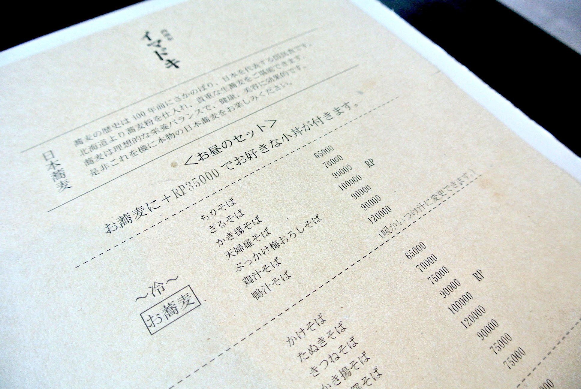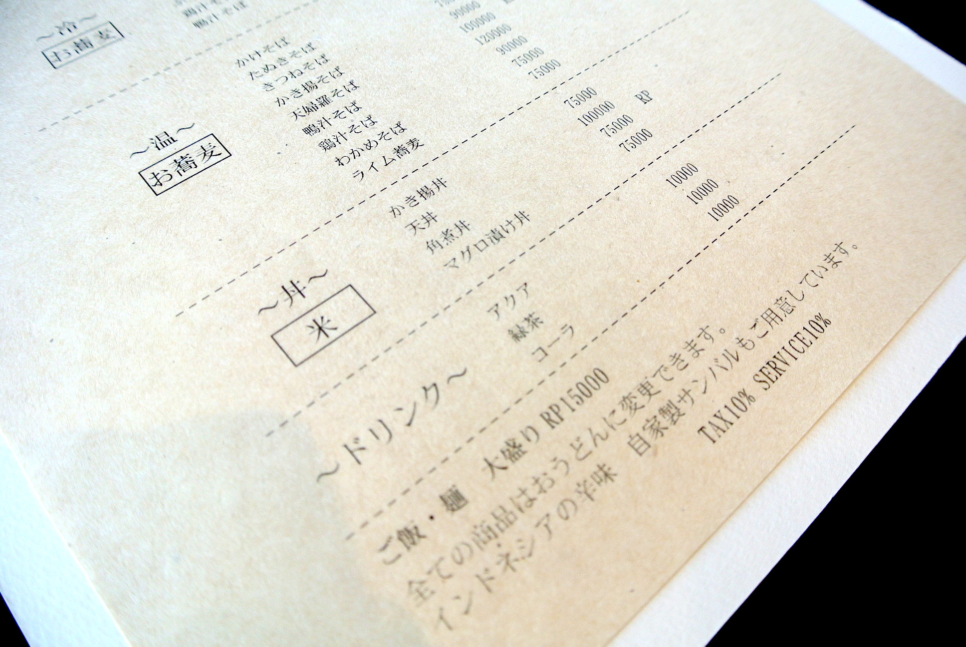 ざるそば+ミニかき揚げ丼 ?Rp 70.000 (ミニ丼セットは追加 Rp 35.000 ) +21%税サ