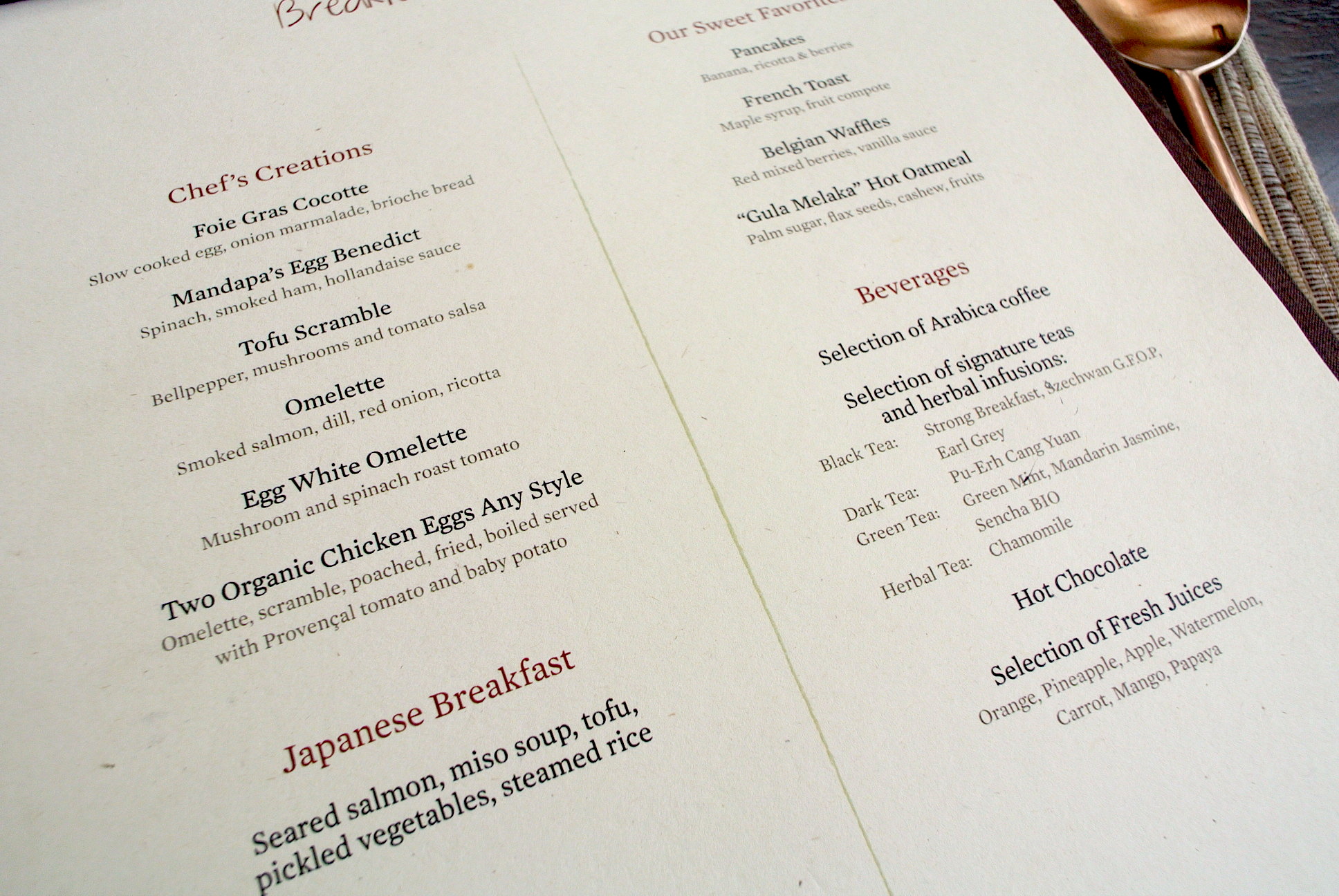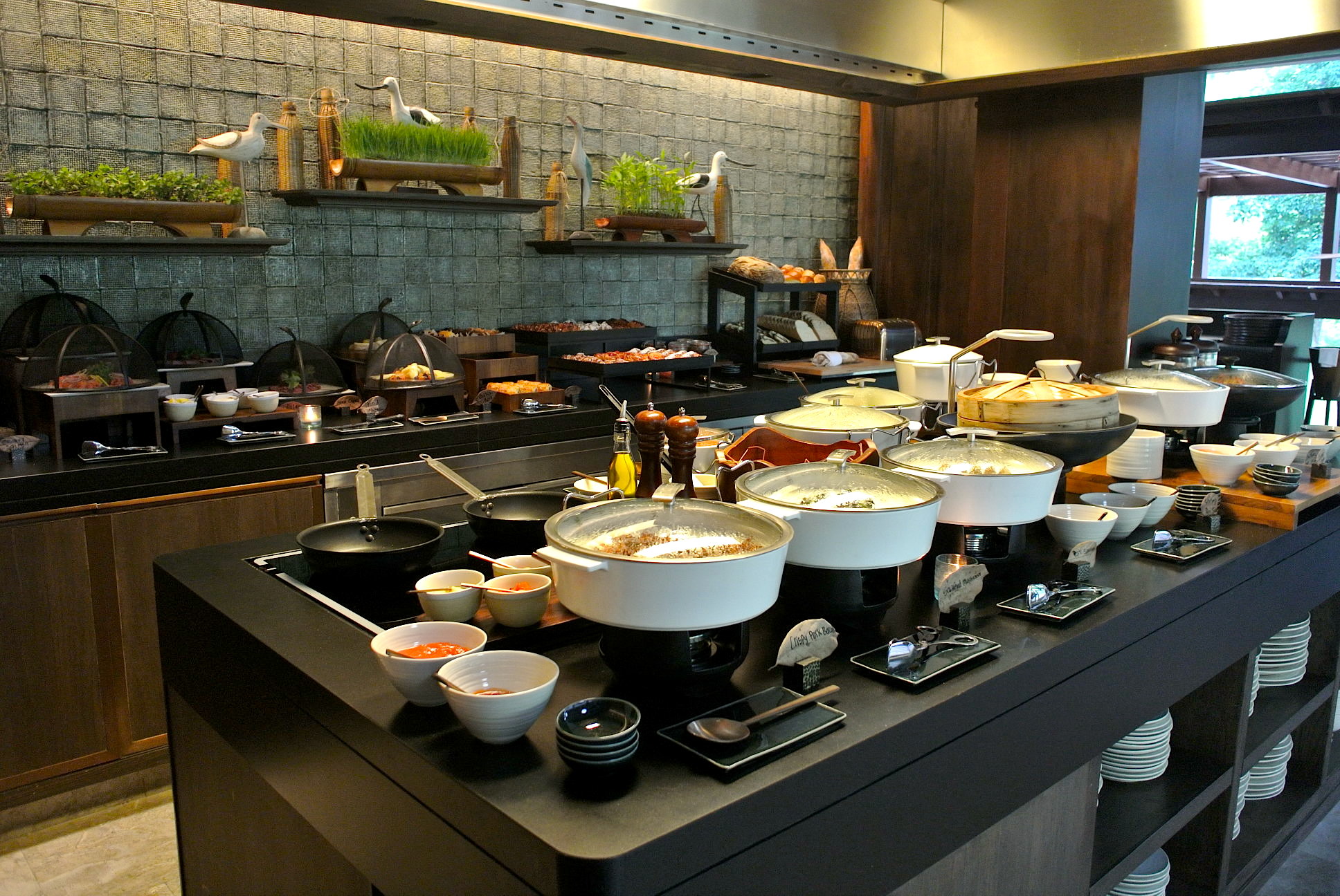 マンダパの朝食はブッフェ形式。(*アラカルトメニューもあり)