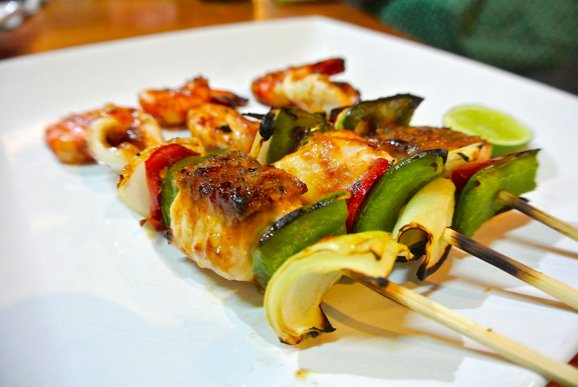 おつまみにもぴったりのシーフードケバブ。オリジナルソースが食欲をそそりま〜す。