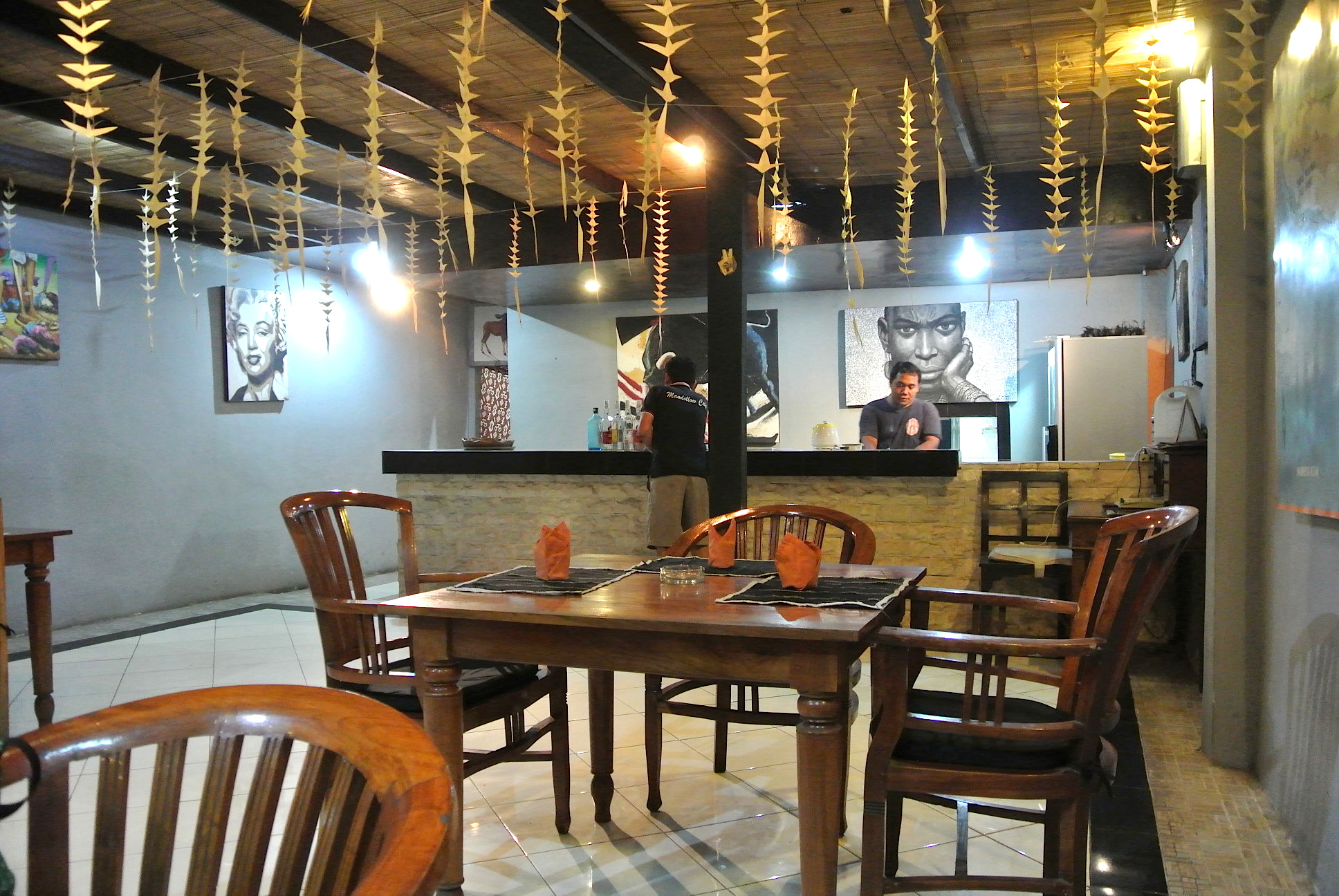 半オープンエアの店内には、個性的な絵画がい〜〜〜っぱい!