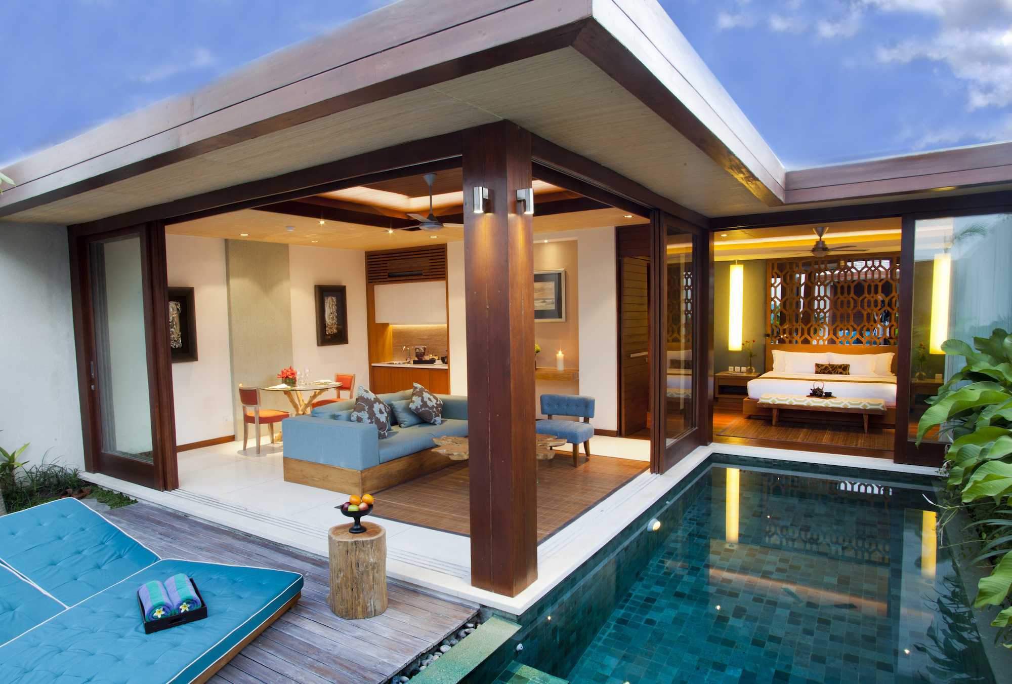 青を貴重としたスモールヴィラは、特にレディース旅行者に大人気。