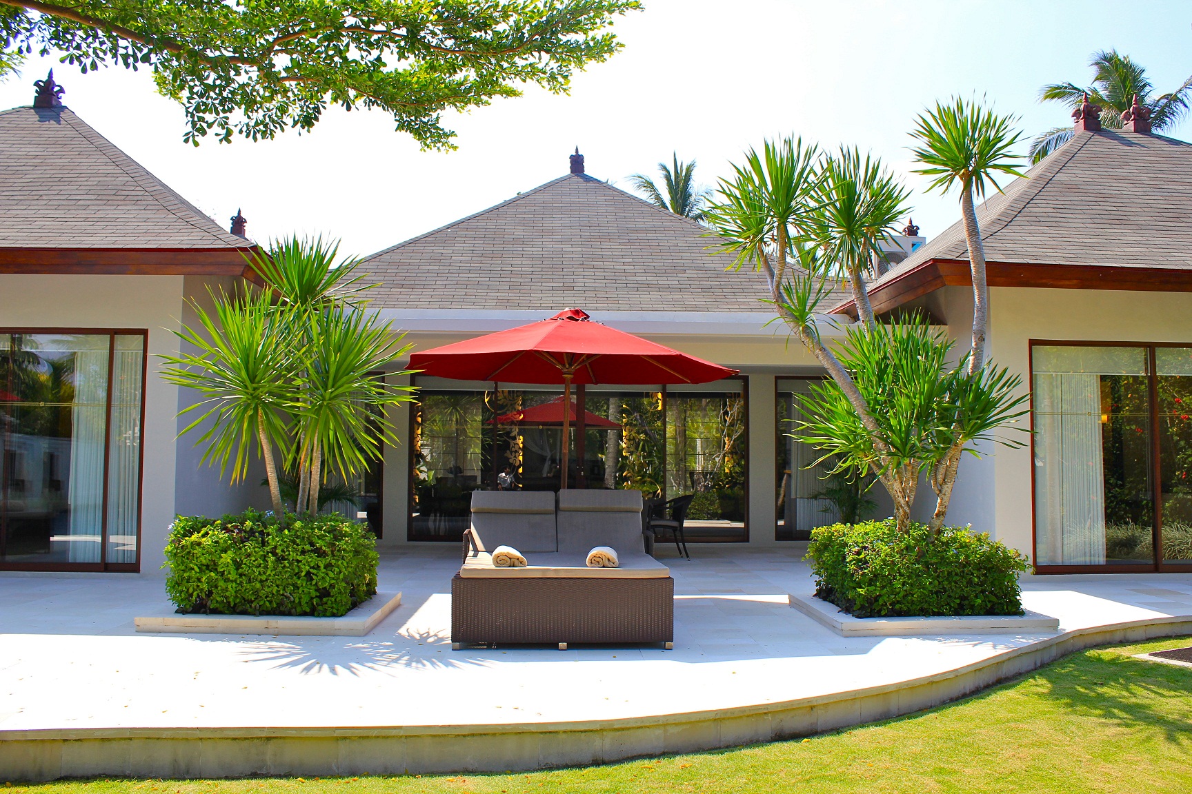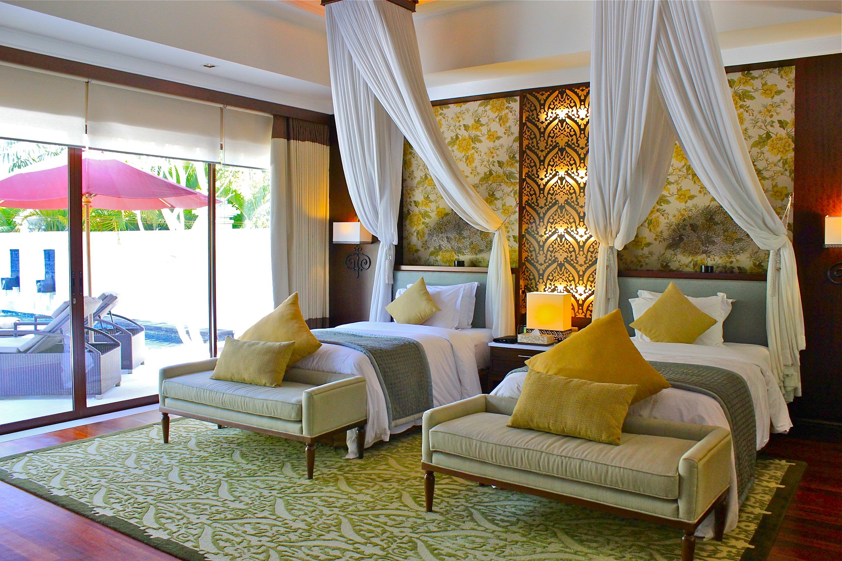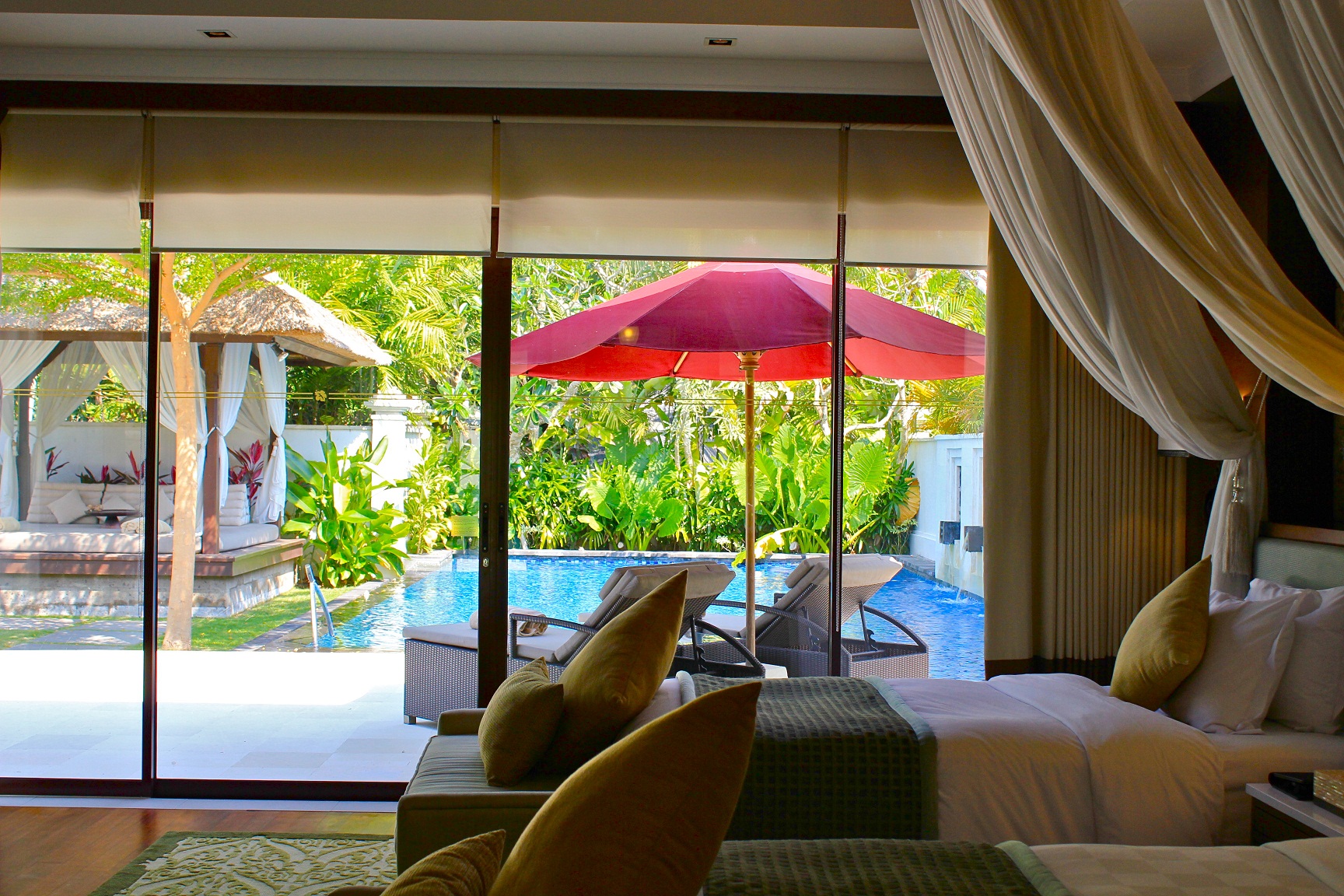 大きな窓の外には これまたドデかいプライベートプールとカゼボ付き。