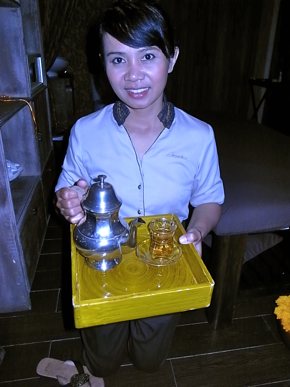 ここでも香りの良いハーブティー入れてくれます。これがまた癒されるんだわ〜。