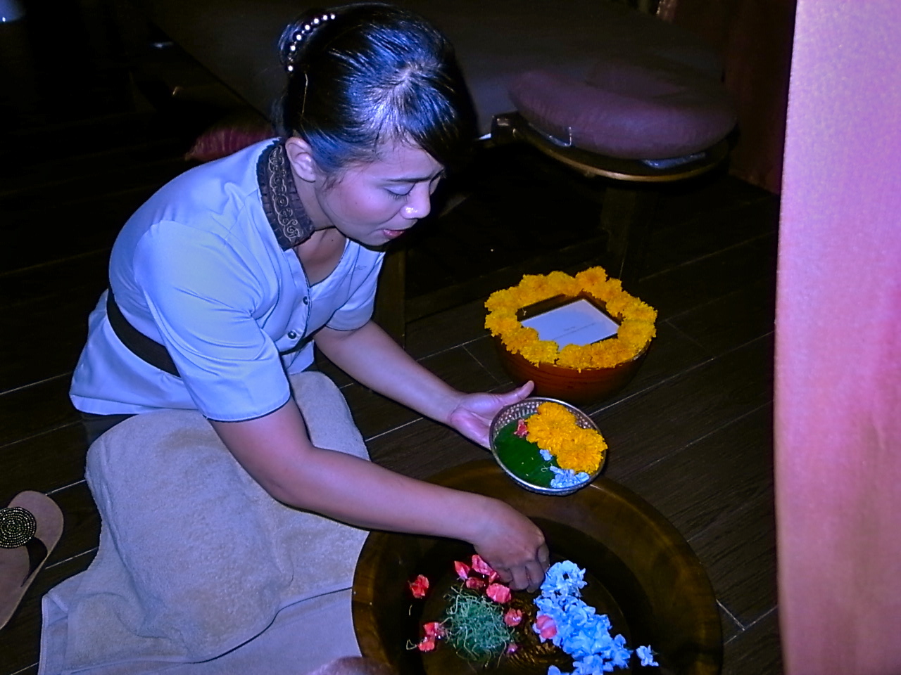 軽くマッサージと温めたオイルを注いで足を清める!!といった感じでしょうか。なんか神聖な気分♪