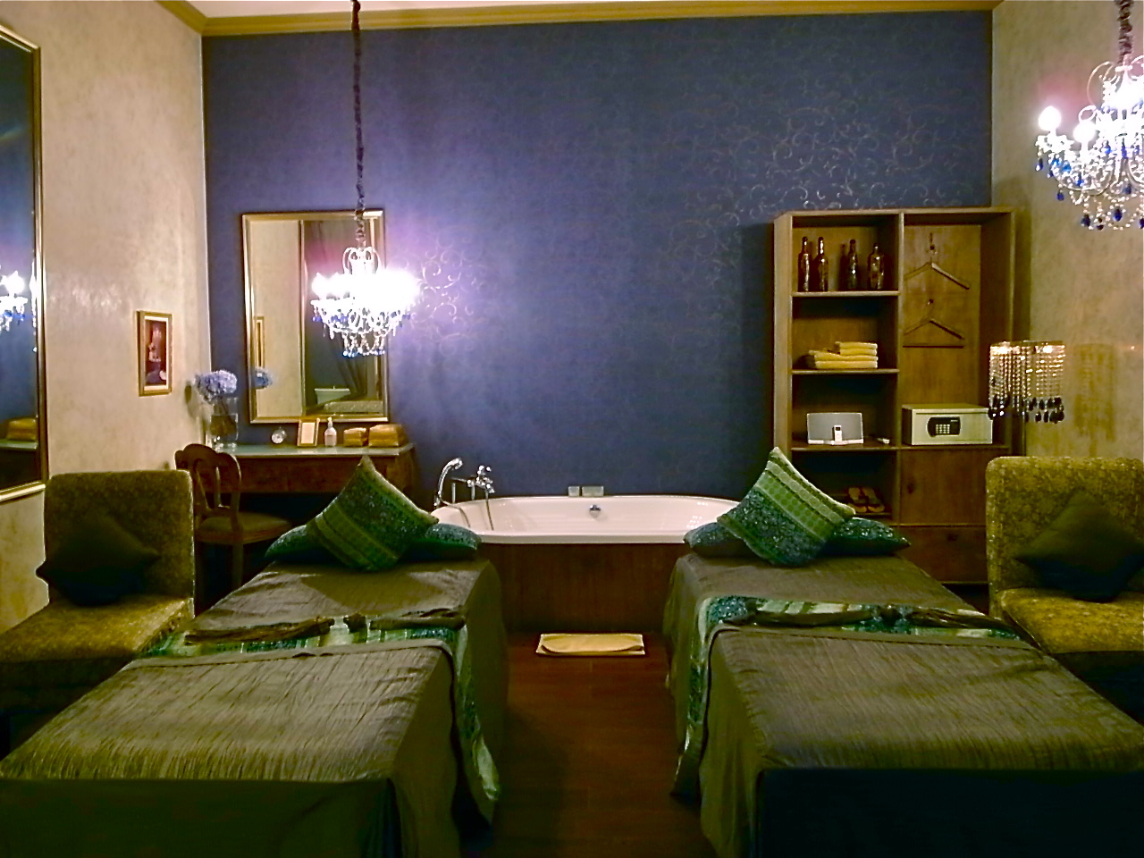 青々しく涼しげなブルーのお部屋。ここはフェイシャルに良いとか♪